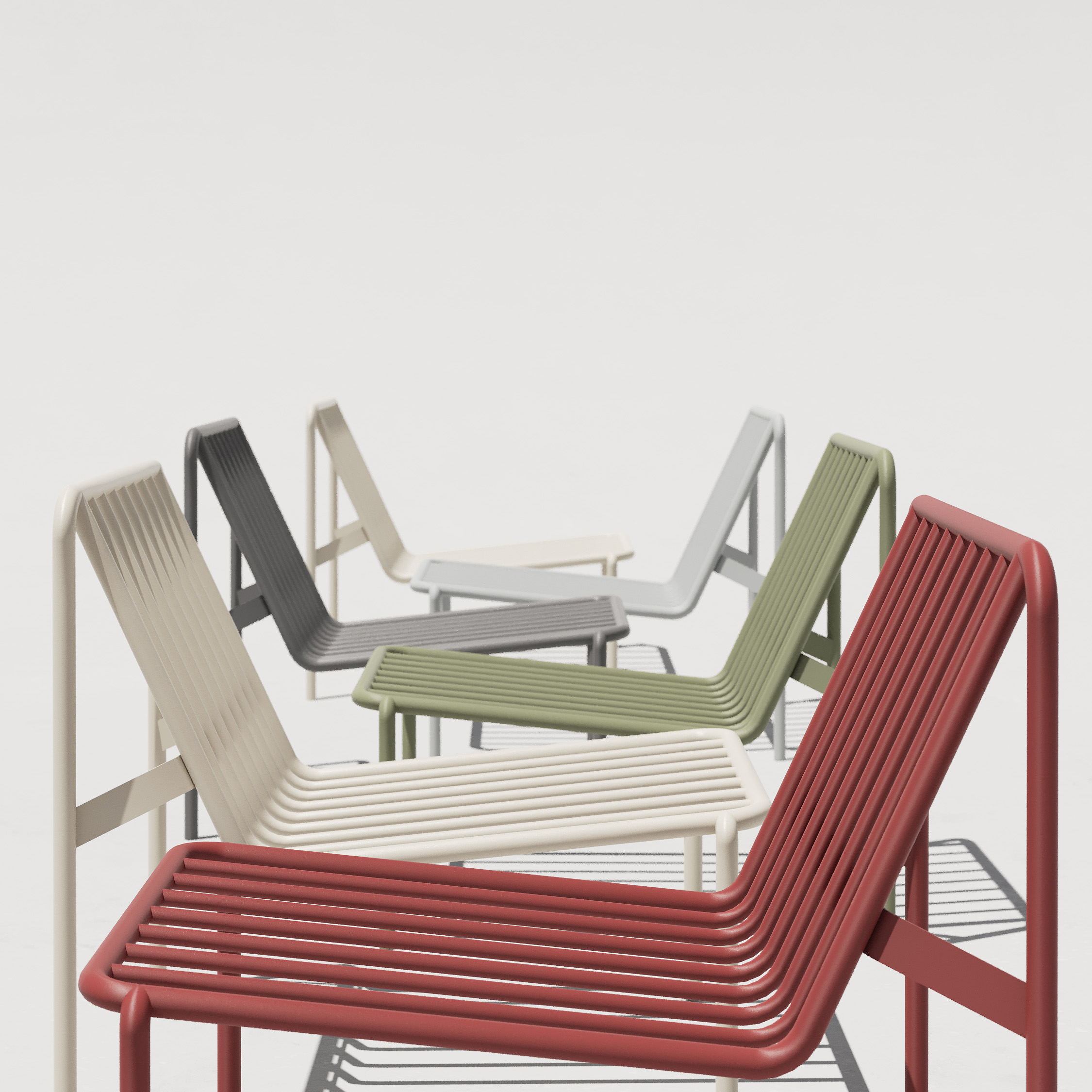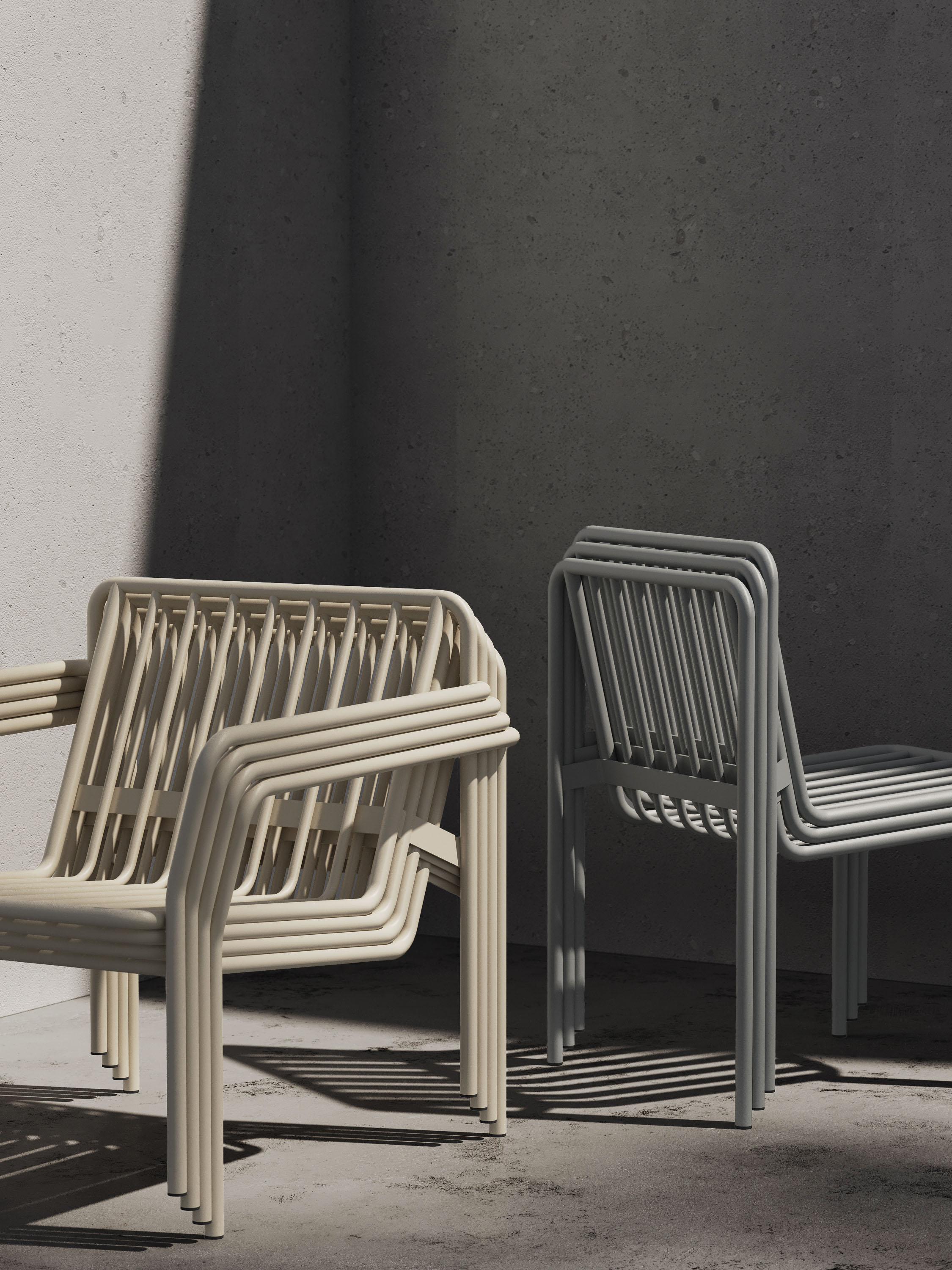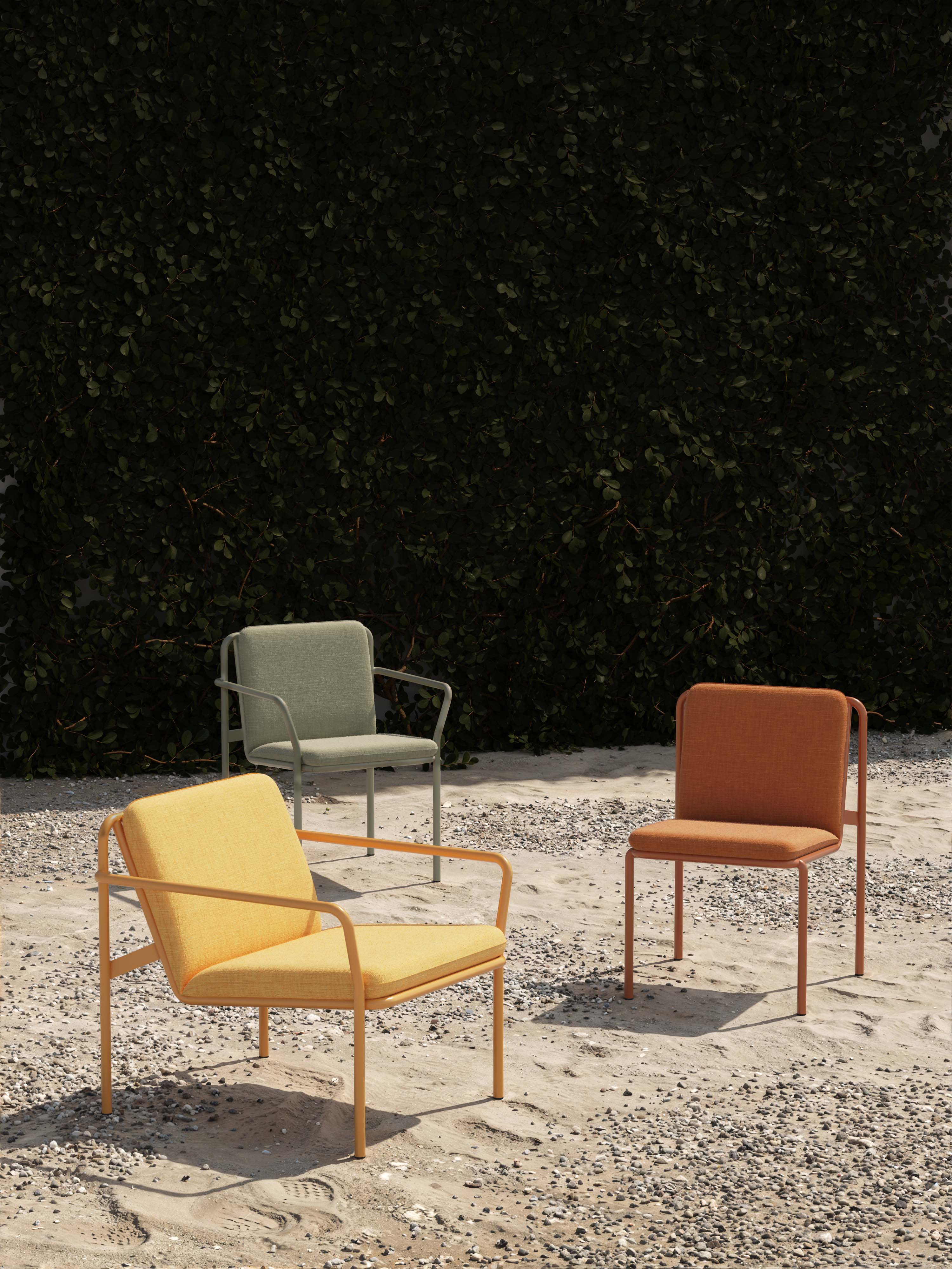 В серию входят четыре предмета: обеденное кресло (с подлокотниками и без) и лаунж-кресло (с подлокотниками и без). Все модели штабелируются, что расширяет сценарии их применения в общественных пространствах — от кафе и ресторанов до гостиничных террас и городских проектов.