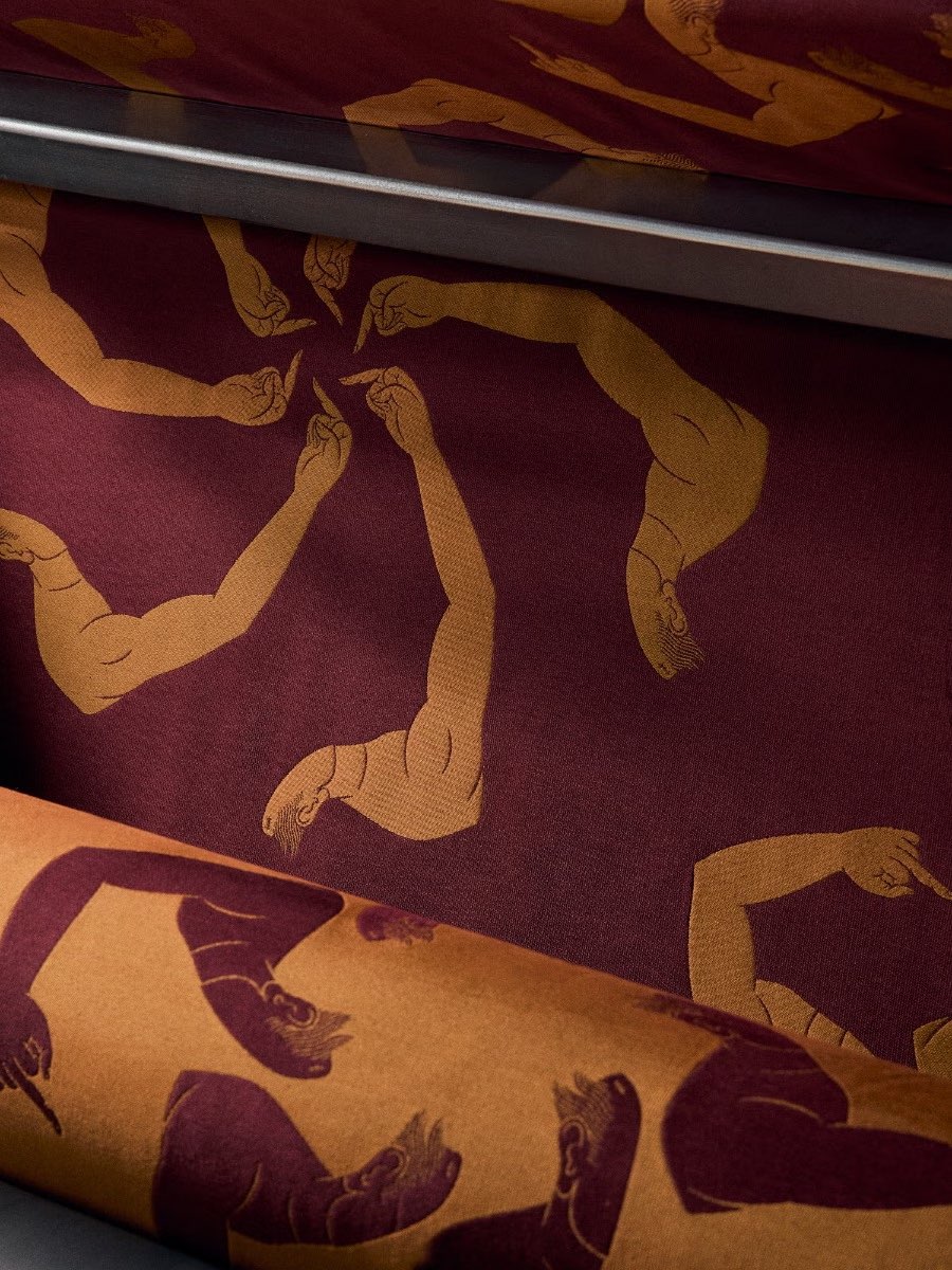 Главное художественное высказывание недели дизайна подготовили там, где не ждали. В пространстве текстильного дома Rubelli, ответственного среди прочего за занавес в Большом театре, ткань становится носителем политического и культурного высказывания через работу Ай Вэйвэя. Инсталляция About Silk переводит визуальный язык художника в новую плоскость — сложные лампасы с металлическими нитями воспроизводит узнаваемые символы из его работы The Animal that Looks like a Llama but is Actually an Alpaca. Центральный объект — скульптурный диван — продолжает эту линию, соединяя функциональность и нарратив. Проект демонстрирует, как текстиль может выходить за рамки отведенной ему декоративной роли, становясь инструментом для критического высказывания.