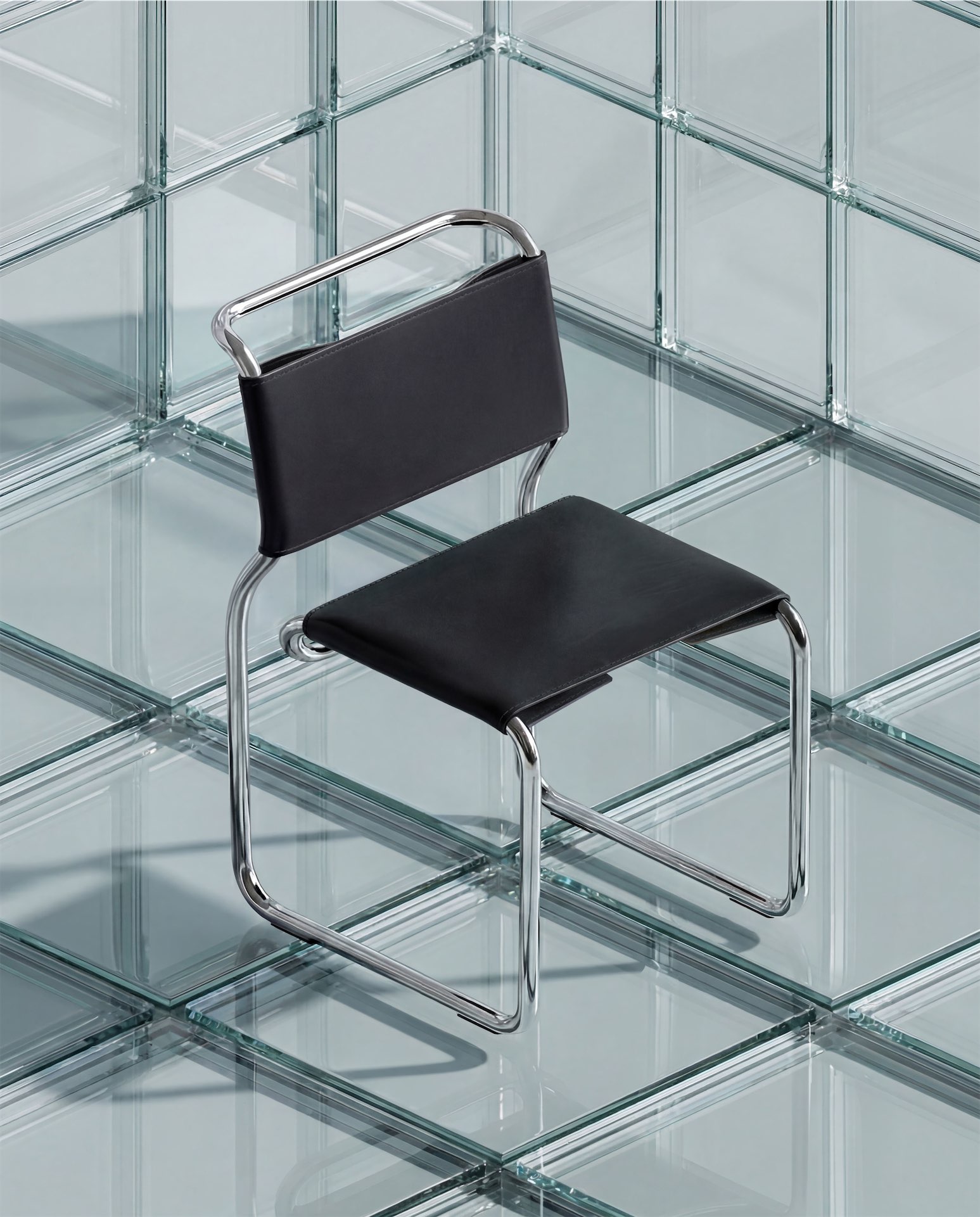 Каркас выполнен из изогнутой стальной трубы, формирующей непрерывную линию, а сиденье и спинка обтянуты кожей и закреплены с помощью пружинной системы. Конструкция сохраняет видимую логику сборки — крепления остаются открытыми. Проект продолжает традицию Баухауса, где форма напрямую связана с функцией, а материал — с долговечностью и тактильным опытом.