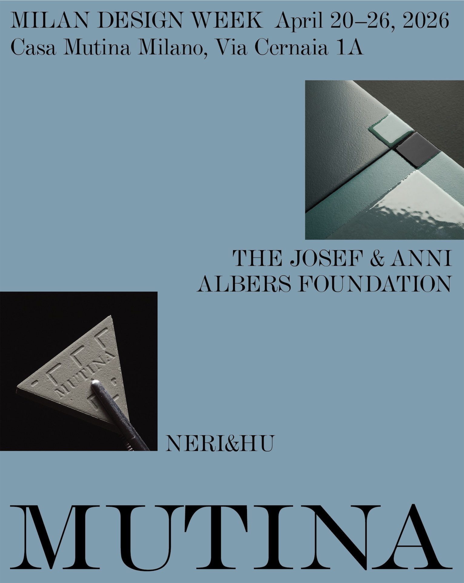Параллельно проект с Josef & Anni Albers Foundation фокусируется на наследии знаменитой пары художников. А именно на цвете как системе взаимодействия — плитка превращается в поле оптических эффектов и визуальных историй. Инсталляция в Casa Mutina рассматривает поверхность не как покрытие, а как активный элемент, формирующий пространство.