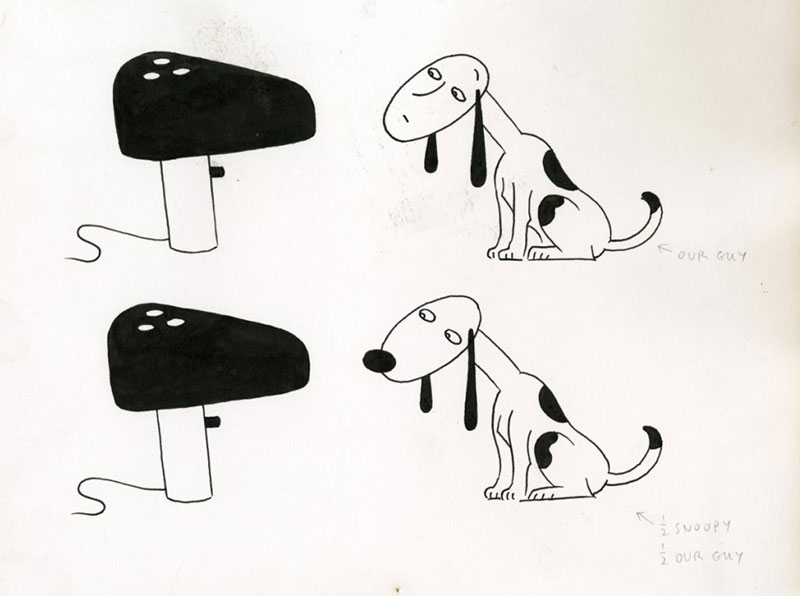 Светильник Snoopy братьев Кастильони, 1967. Источник: https://flos.com/en/it/snoopy/M-snoopy.htmlНаброски к светильнику Snoopy