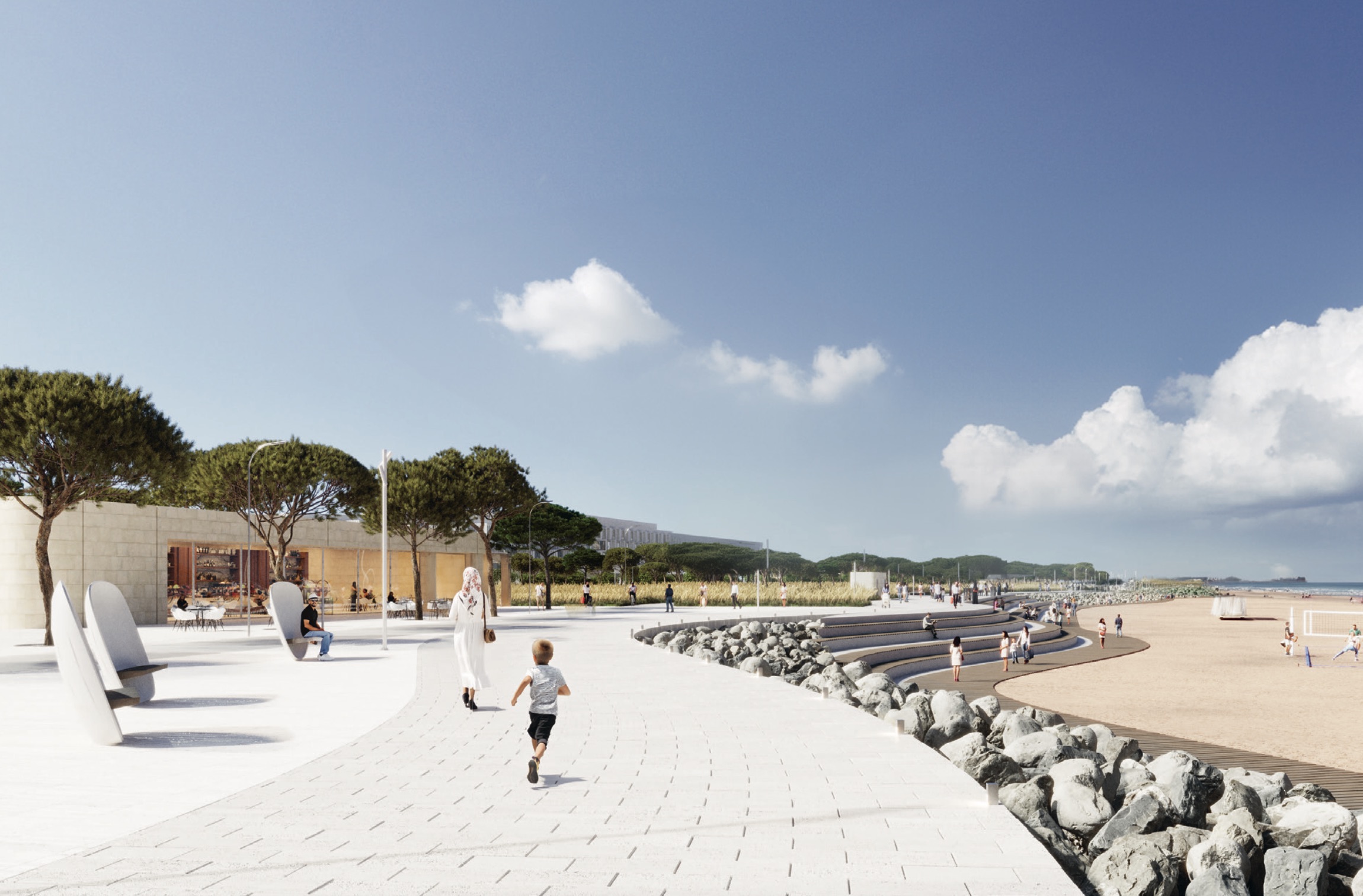 Концепция масштабного туристско-рекреационного комплекса площадью 400 га на берегу Каспийского моря. В его составе — 479 объектов инфраструктуры: от отелей и кафе до павильонов и беседок, возводимых с акцентом на устойчивое озеленение, адаптированное к климату региона. Особое внимание уделено многоярусной посадке: сосна, катальпа, лавровишня и декоративные многолетники создают цветущий зеленый «оазис» круглый год. Экологичное архитектурное решение включает озелененные крыши и контейнерные сады, а геопластика со скальными растениями обеспечивает декоративность даже на склонах.