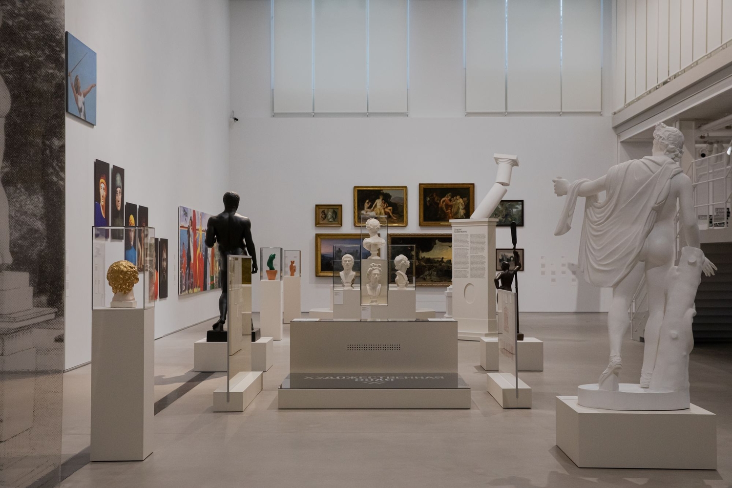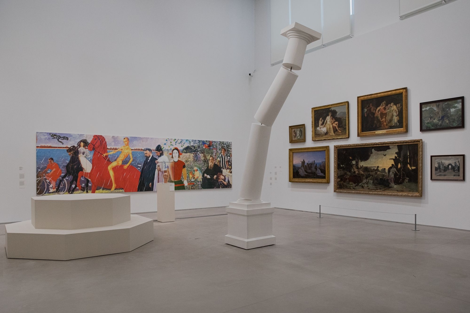 В экспозицию входит живопись и графика классицизма, академизма и модерна, русские иконы, готическая скульптура и современные произведения: инсталляции, скульптуры, гобелен, видео-арт. Полотна Александра Иванова, Льва Бакста и Александра Бенуа вступят в диалог с новыми работами Алексея Громова, Дани Пирогова, Тани Пеникер и других художников.