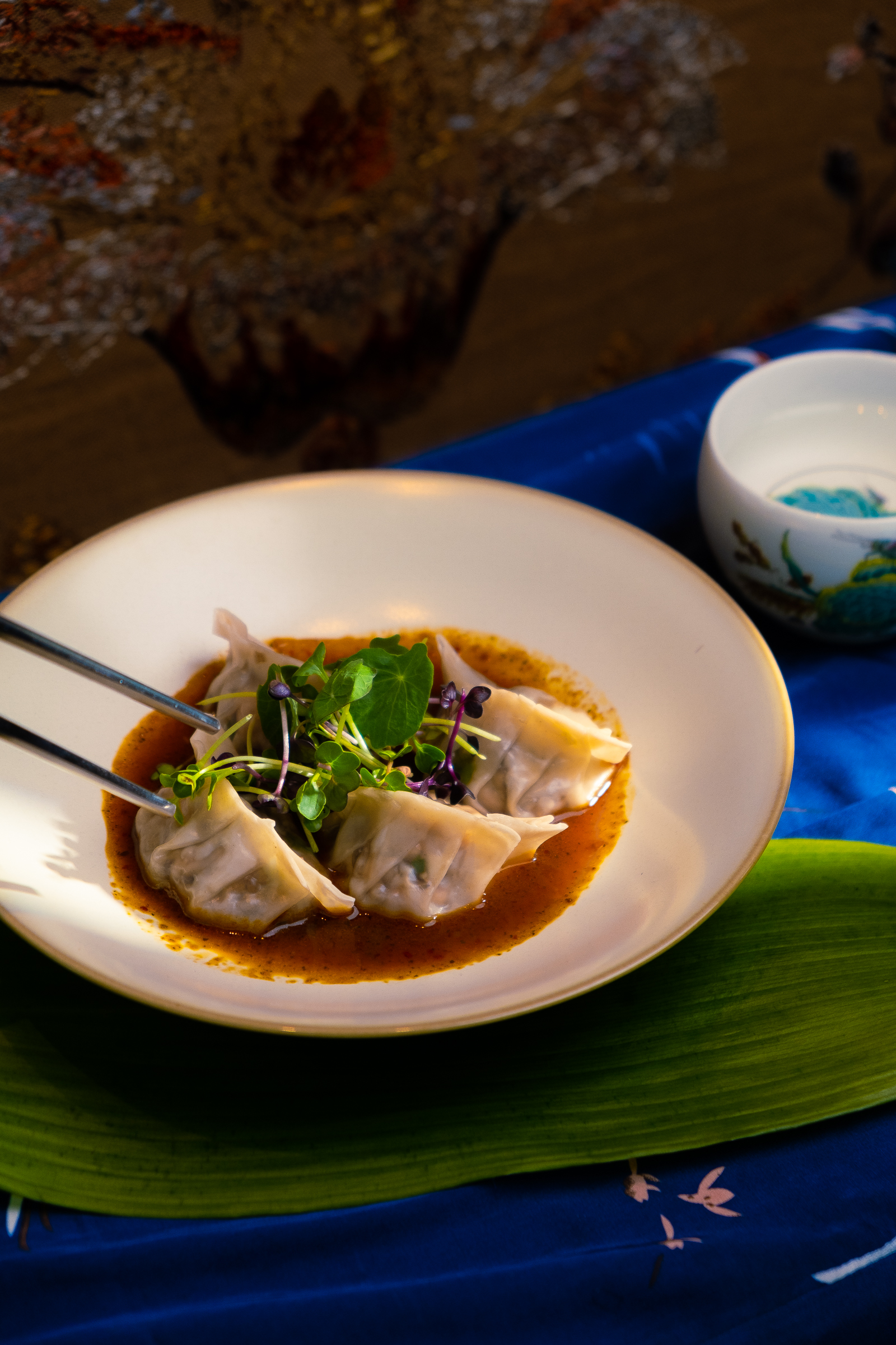 Гедза на пару с начинкой из лосося и соусом азидаши, ресторан Uliss Asia