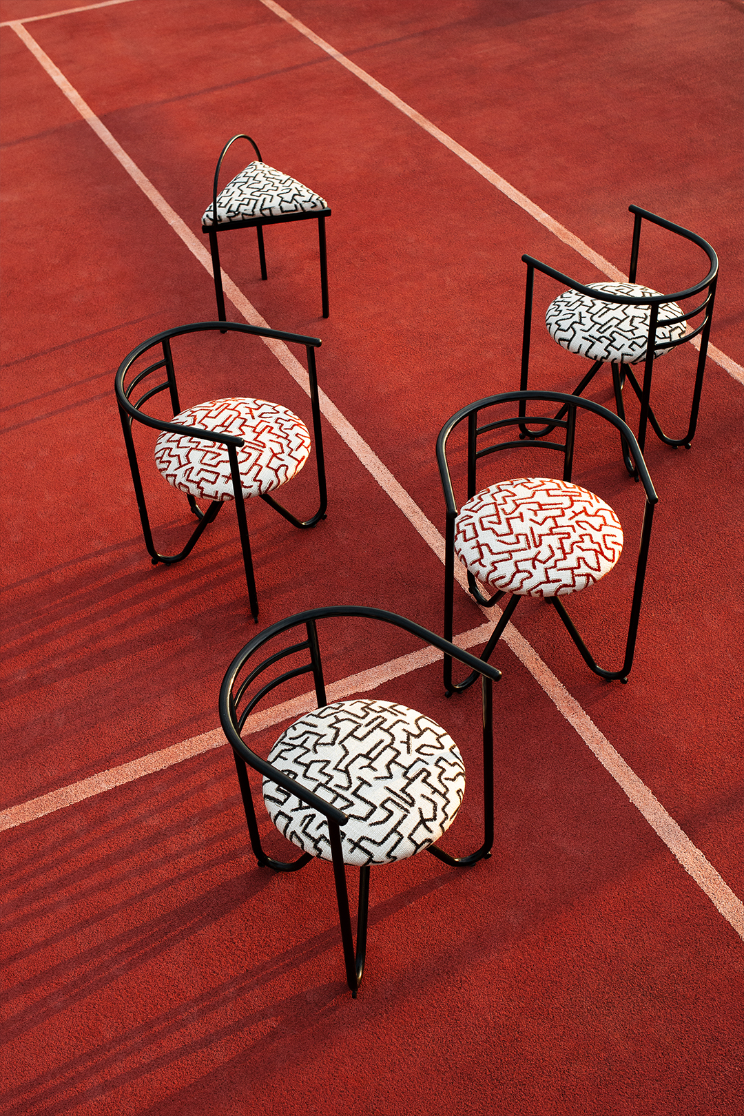 Визуальный язык коллекции Dedar уходит от прямой фигуративности и обращается к абстракции. Графические мотивы и цветовые поля складываются в сложный, многослойный рассказ, где коды не цитируются буквально, а переосмысливаются. Исторические пласты — от гобелена из Байе до модернистского рисунка Центра Помпиду — перерабатываются в геометрические структуры, переосмысленные тартаны и калейдоскопические композиции. Однотонные и орнаментальные ткани Dedar не противопоставлены друг другу: они существуют как единая система, способная удерживать сложные визуальные сценарии и переводить контраст в состояние равновесия.