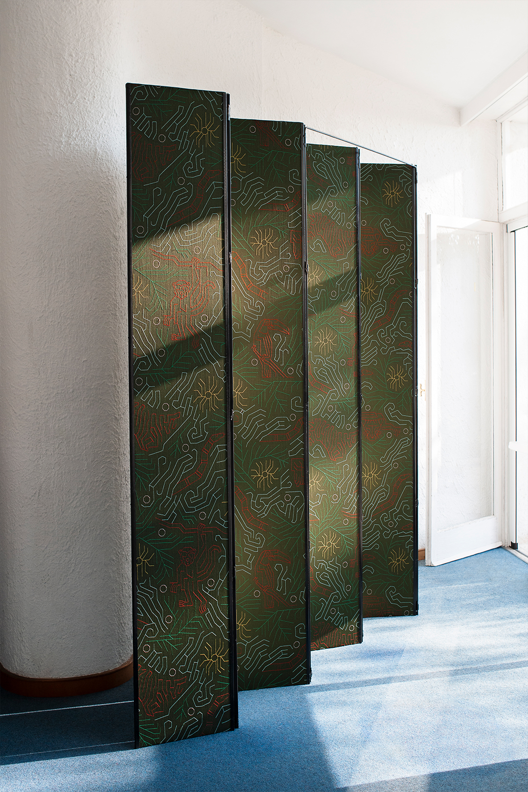 В линии Apt Embroideries интерес к ремеслу сочетается с исследованием функциональных возможностей текстиля. Вышивка — геометрическая, ритмичная, местами почти рельефная — появляется в прочных, моющихся и огнестойких тканях, расширяя привычные границы между декоративным и утилитарным. Такие поверхности особенно органично работают в общественных и гибридных пространствах, где эстетика и практичность должны существовать на равных.
