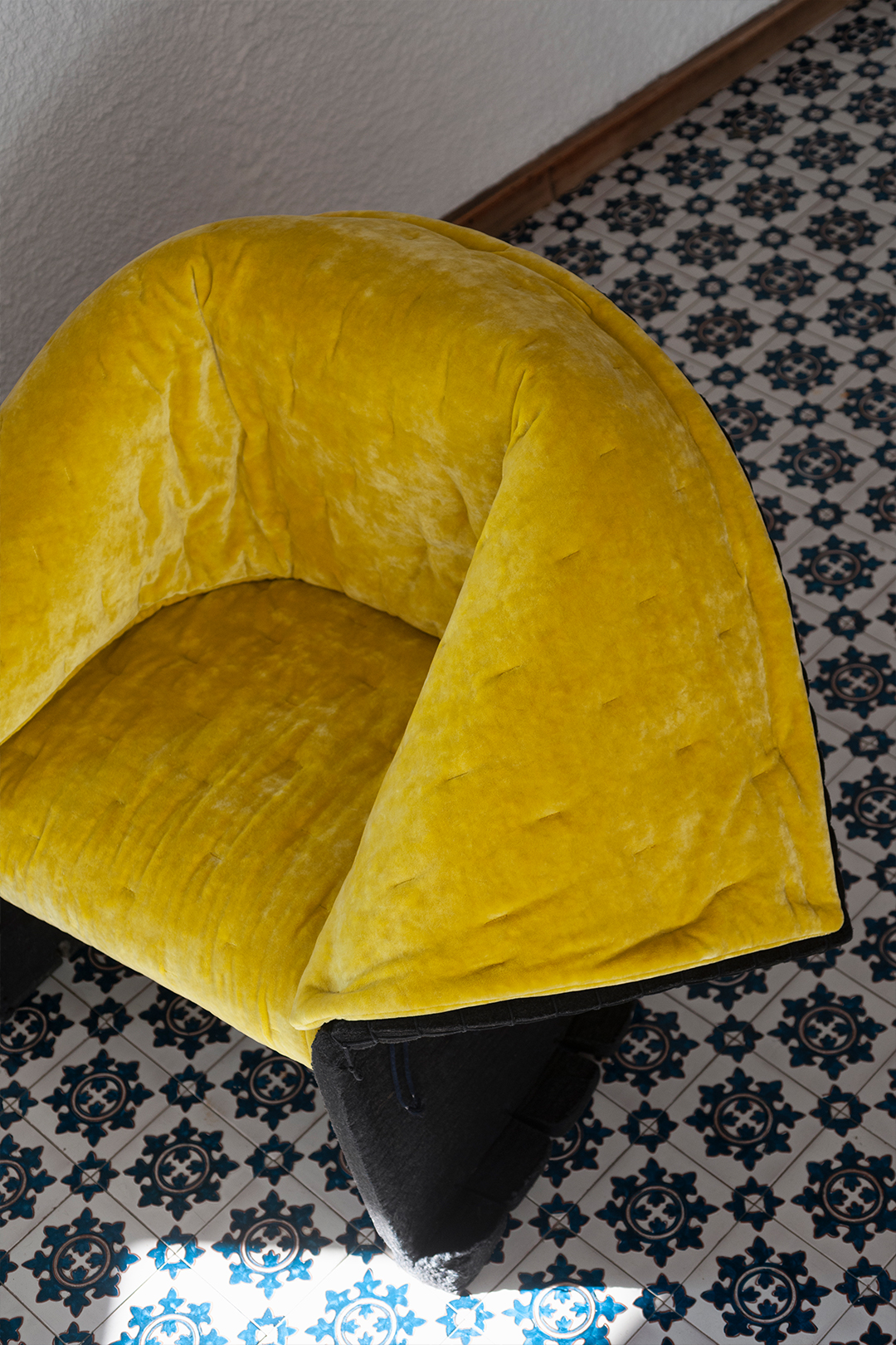 Однотонные ткани играют в коллекции ключевую роль. Именно они создают ощущение тишины и устойчивости, необходимое для пространств с насыщенной визуальной средой. Широкая цветовая палитра — от приглушенных, почти пыльных оттенков до более ярких и плотных тонов — поддерживают это состояние. Бархат, сатин, шелковые переплетения и мохер подчеркивают точность драпировки и естественное движение поверхности.