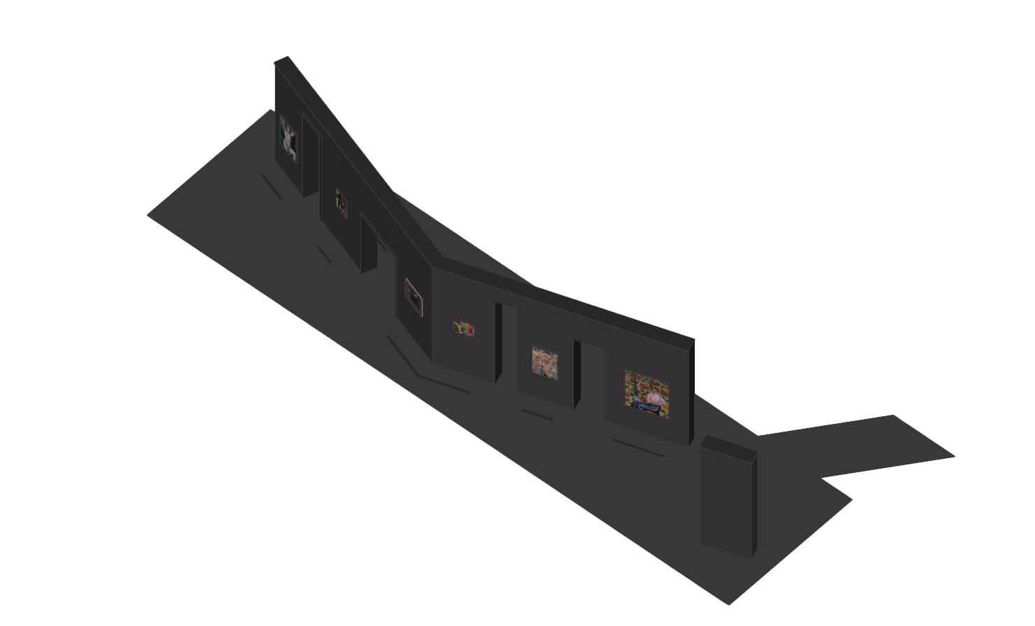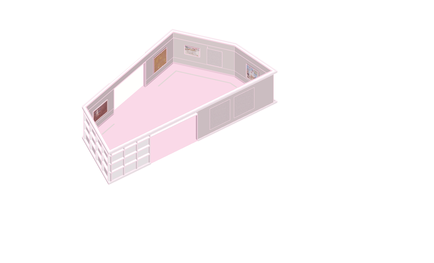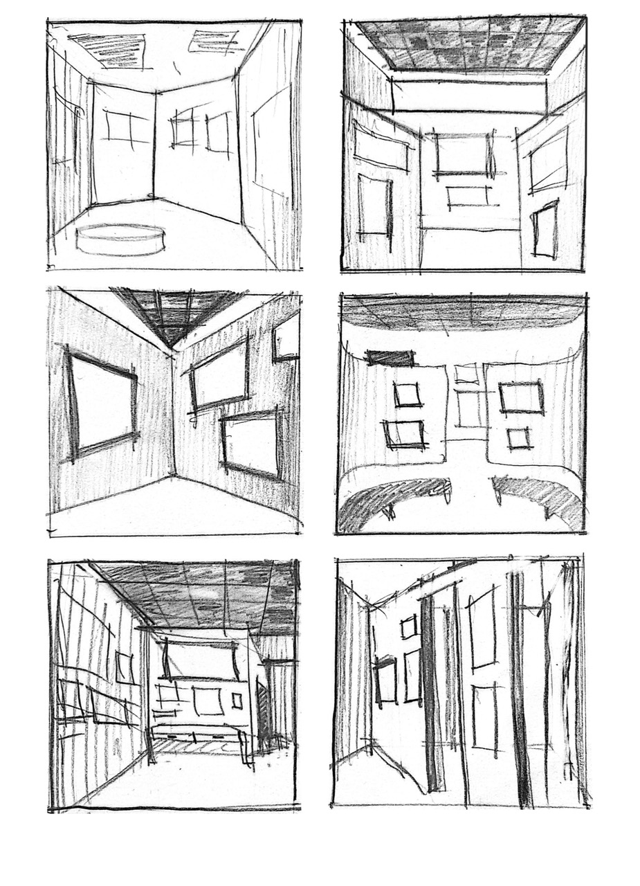 Параллельно мы, конечно, изучали актуальные работы коллег и обращались к неархитектурным аналогиям: фильмам, книгам, живописи (особенно из каталога выставки) и так далее. Одной из важных тем на старте стало разграничение выставочной архитектуры и экспозиционного дизайна. Мы пришли к выводу, что архитектура подразумевает большее, структурное вмешательство в пространство и целостный подход к нарративу выставки. Дизайн же скорее работает с точечными внедрениями: мебелью, отдельными элементами. В какой-то момент в обсуждениях родилась аналогия с городом, появилось разделение на условно «фасадное» (экстерьерное) и интерьерное восприятие пространства внутри самой выставки.