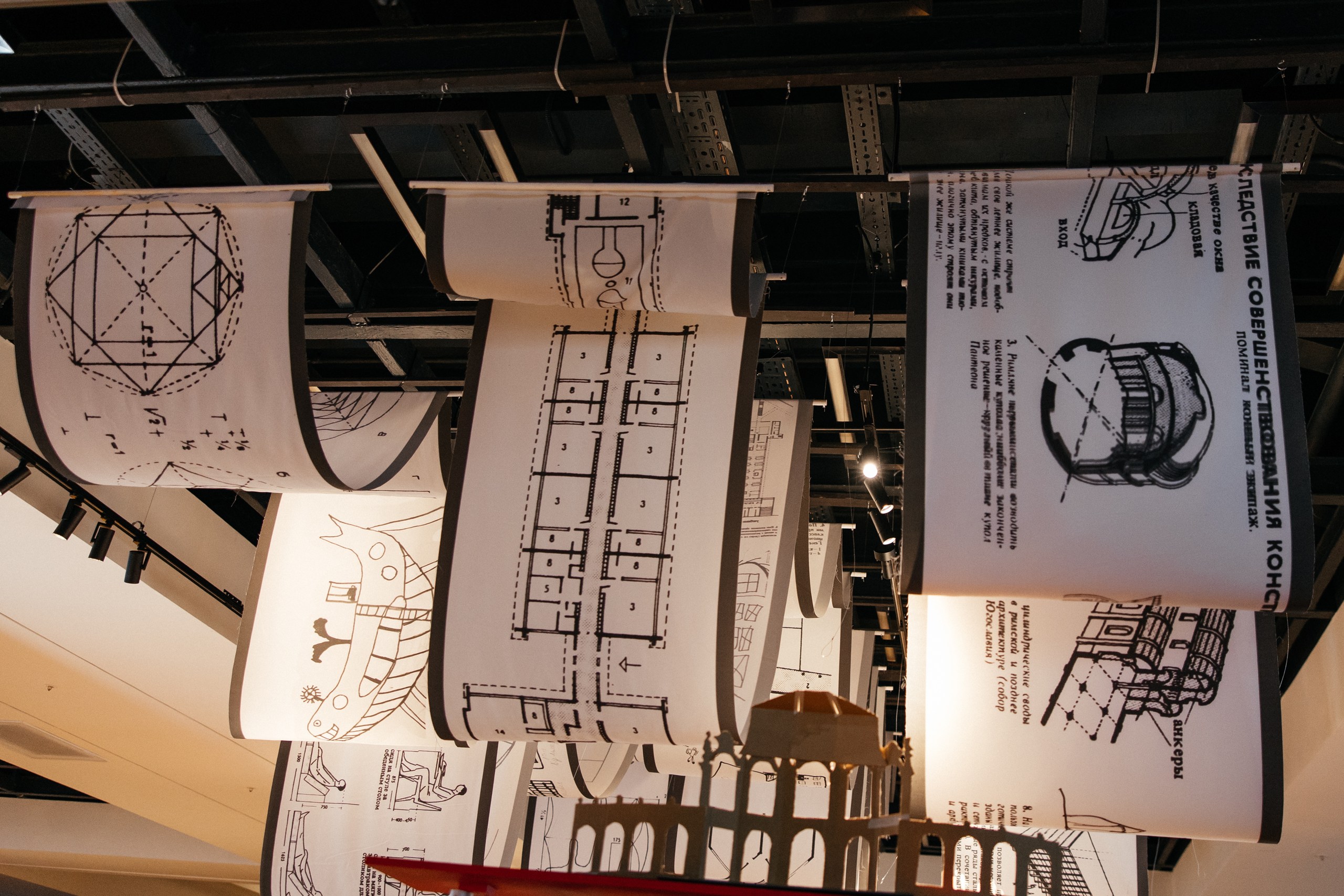 На выставке представлены графические работы архитекторов — проекты жилых комплексов, культурных зданий, храмов и деловых центров, а также нереализованные архитектурные утопии конца XX века.