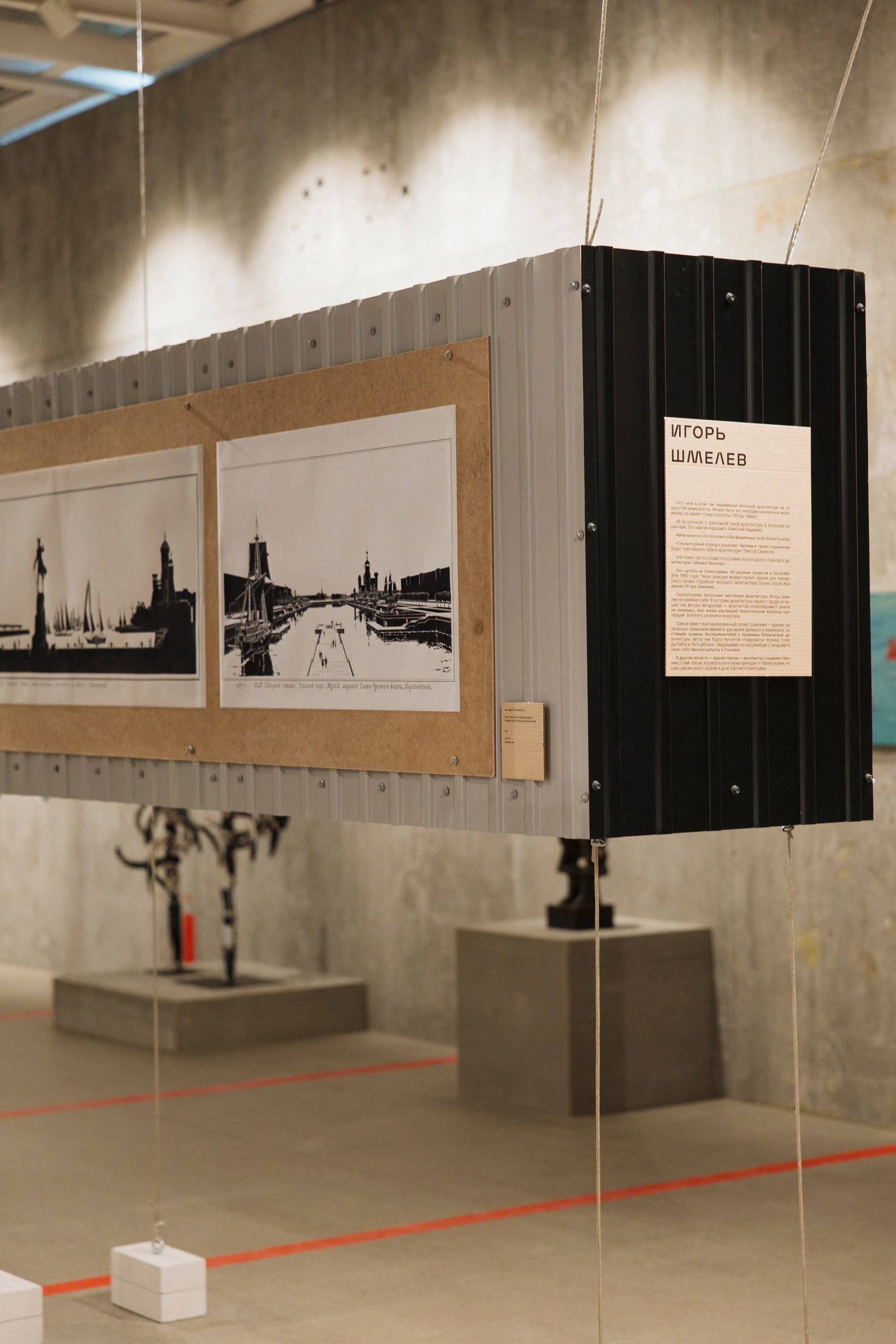 Архитектурные работы будут вступать в диалог с произведениями представителей ленинградской-петербургской художественной сцены — Михаила Шемякина, Анатолия Белкина, Тимура Новикова, Бориса Казакова, Андрея Крисанова и других.