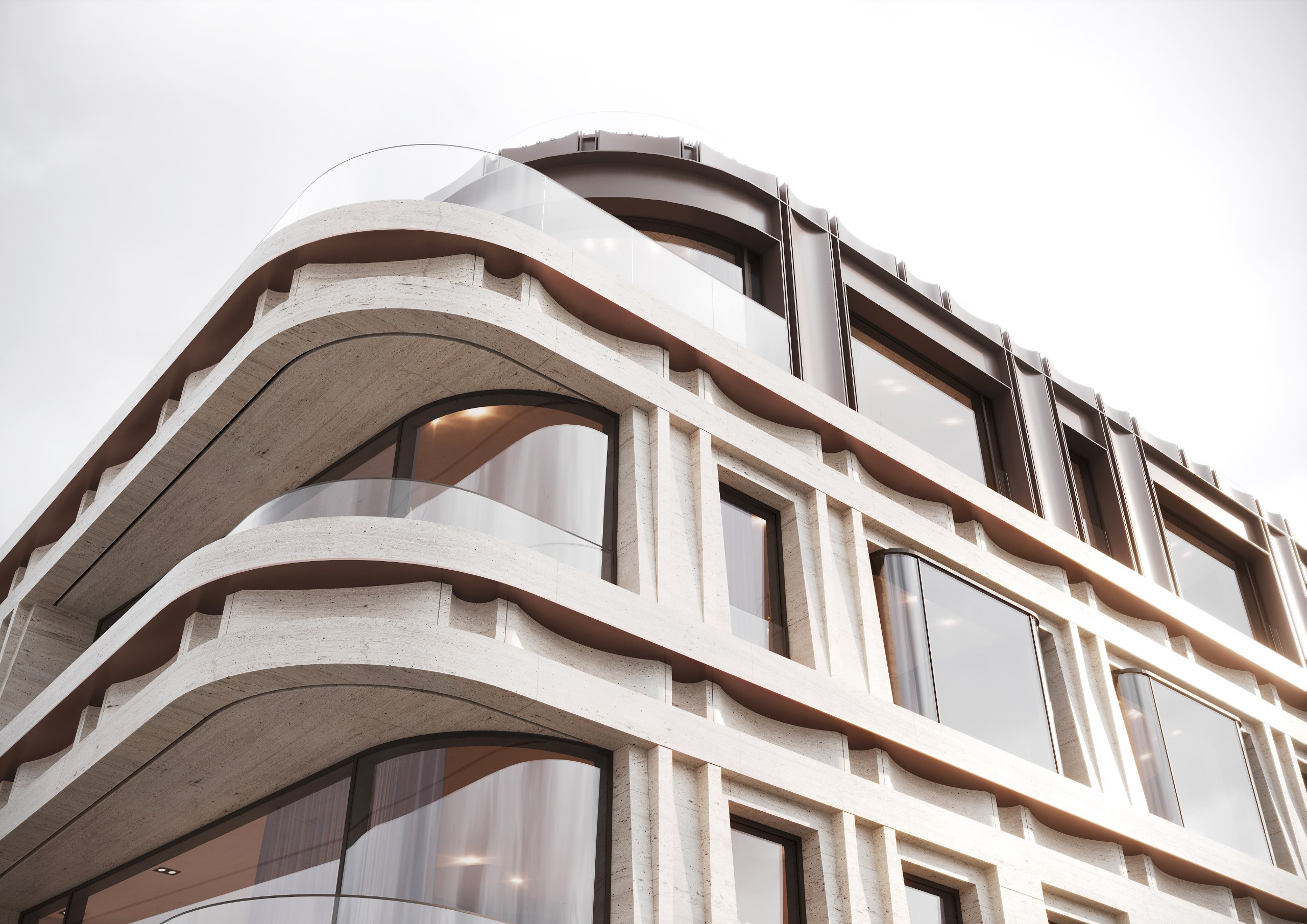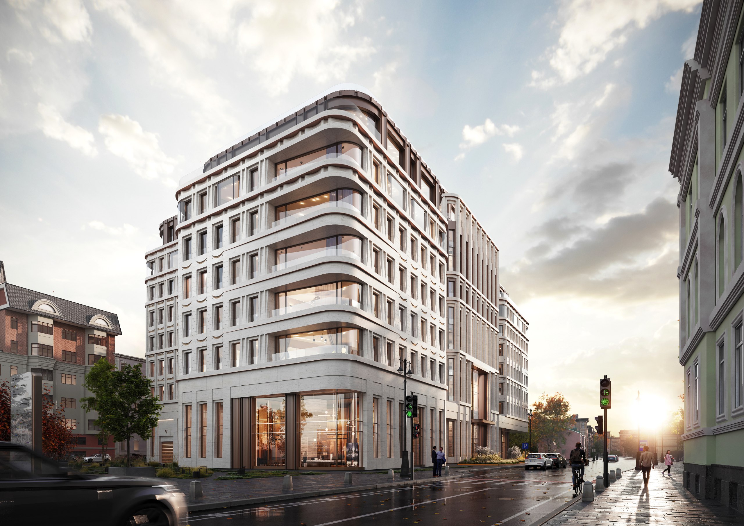 Проект в Харитоньевском переулке от девелопера MR и архитектурного бюро WALL претерпел изменения: этажность снизилась с девяти до семи. Последний уровень решен как пентхаус со ступенчатым отступом, формирующим карнизный горизонт. Вместе с сокращением высоты фасадное решение стало более сдержанным по пластике по сравнению с первоначальной версией. Сам проект сменил название с VEIL на «Роден».