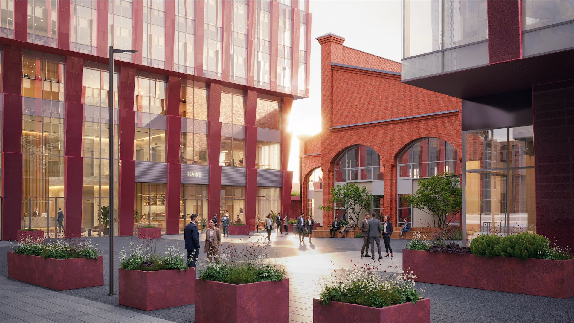 Архитектуру в лаконичной, но выразительной стилистике разработало бюро .ket — яркие фасады получили модные джамбо-окна, а зеленые кровли добавили проекту динамики. За благоустройство с прогулочными маршрутами и площадками отвечает бюро Basis, за интерьеры МОПов — Babayants Architects.