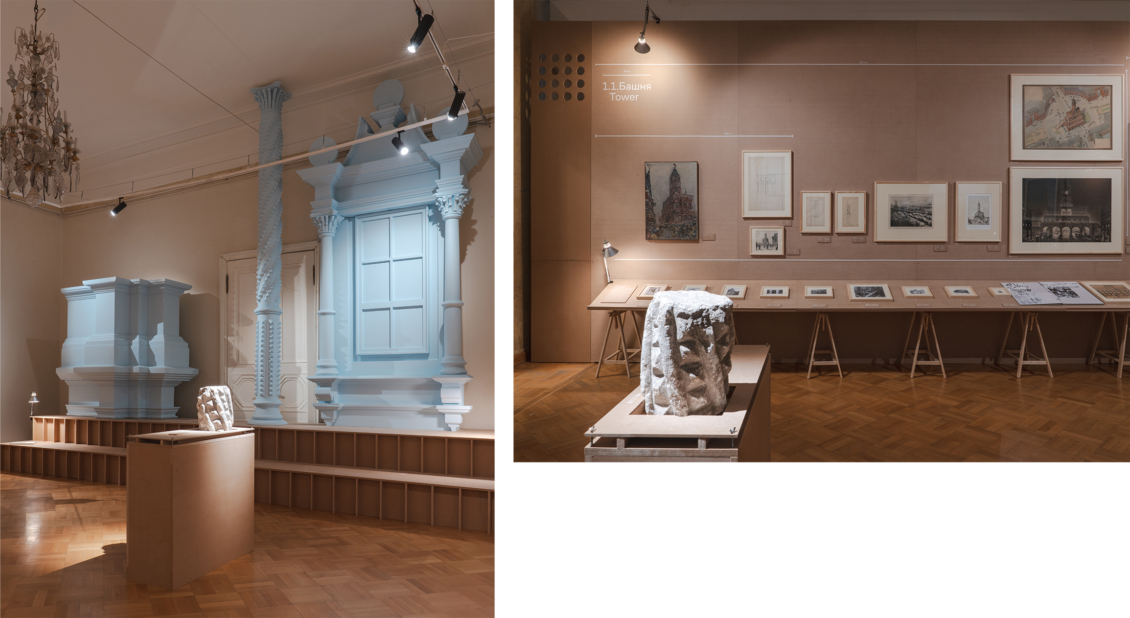 А. С. То, что в архиве музея архитектуры есть некоторые снесенные московские артефакты – здания в разобранном виде. Например, частично Сухаревская башня. Осталось какое-то количество камней: некоторые были выставлены, но ещё множество осталась внутри фонда. Осознание, что Сухарева башня существует фрагментарно в разобранном виде — впечатляет.