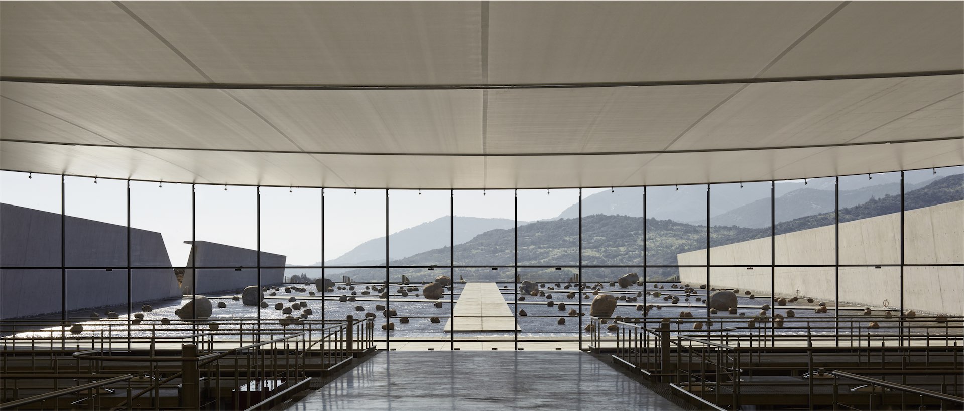 Здание винодельни накрыто низким растянутым тканевым куполом, тогда как большая часть постройки уходит под землю. Просторный вход включает сад из камней, созданный Радичем совместно с его женой, скульптором Марселой Корреа. Сеть каменных дорожек ведет к прозрачному фасаду здания. Проект демонстрирует характерный для Радича прием: здание почти не заявляет о себе снаружи, передавая всю энергию пространству внутри и вокруг.