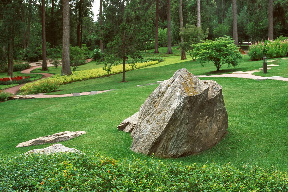 «Работая над одним проектом, мы увидели необычную авторскую архитектуру, очень концептуальную и, как нам показалось, спорную, — отмечает Дмитрий Онищенко. — Это было частное владение площадью 1,5 га, над которым мы работали совместно с архитектором Ладзаро Рабони (Raboni Architetti). Современная, минималистичная, сложная форма дома, которая диктовала определенное зонирование. Итальянские архитекторы, которые занимались интерьером, провели экскурсию, длившуюся несколько часов. Мы заходили в каждое помещение дома, нам рассказывали, что бы хотелось видеть архитектору, как установить связь архитектуры с ландшафтом или как ее прервать. Например, 25-метровый бассейн с лаконичной отделкой был фактически окружен двумя стенами из стекла, а полупрозрачный потолок отражал ландшафт. Сделав композицию снаружи (газоны, многолетники), мы активировали пространство внутри дома. Когда архитектор рассказывает об идеологии и концепции дома, все вопросы, чаще всего, снимаются. И ландшафт подхватывает и развивает идею, создавая по-настоящему гармоничный, цельный проект».