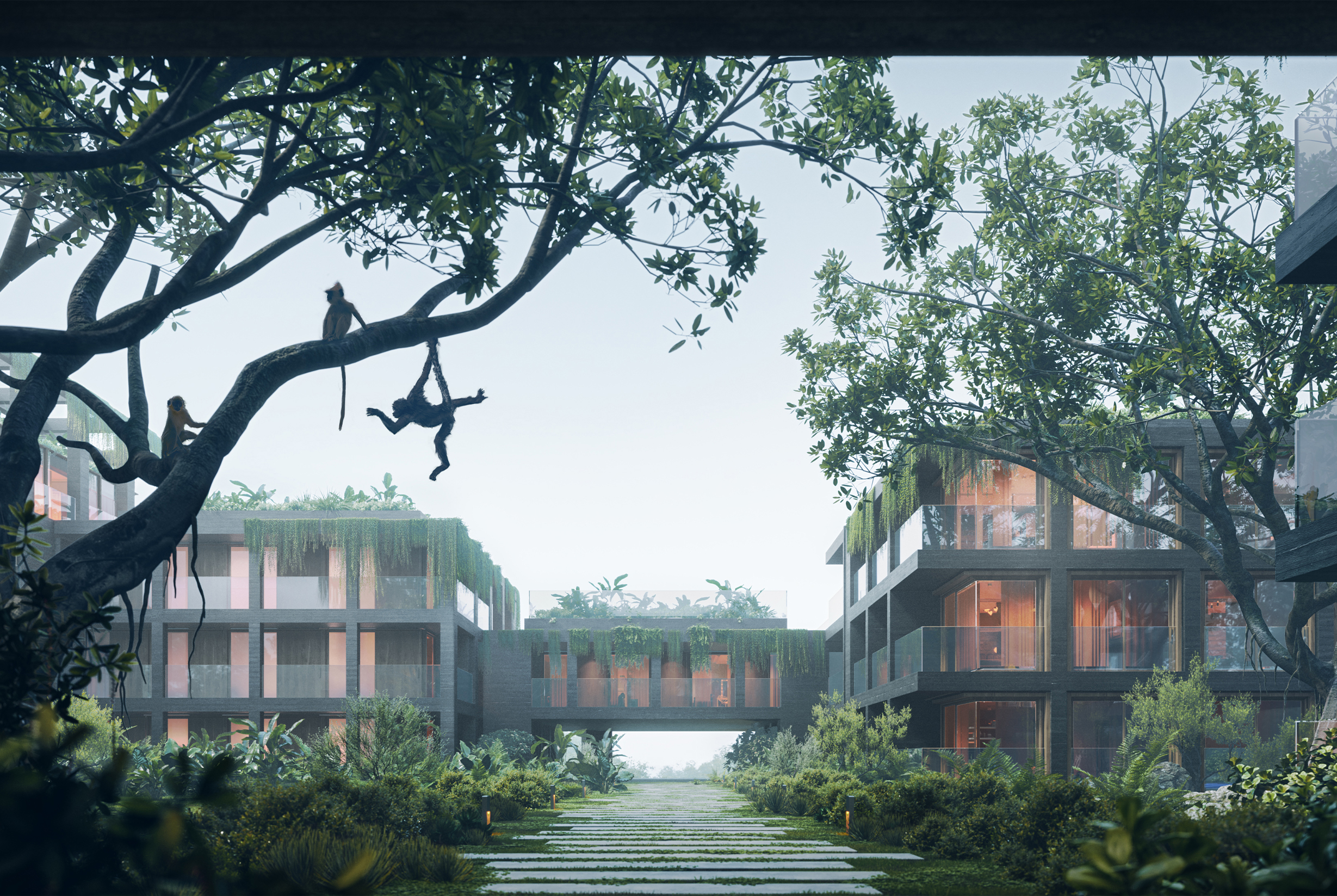 Аналогично в недавнем конкурсном проекте виллы на Бали нам нужно было раскрыть все преимущества участка, который находится в месте, окруженном экваториальной растительностью, с видом на океан. Небольшие корпуса стали органичным продолжением окружающей среды. Зеленые кровли и активная растительность на фасадах усилили связь с природой острова. Так нам удалось сохранить уникальность и красоту места, обеспечив при этом максимально комфортные условия для клиентов».