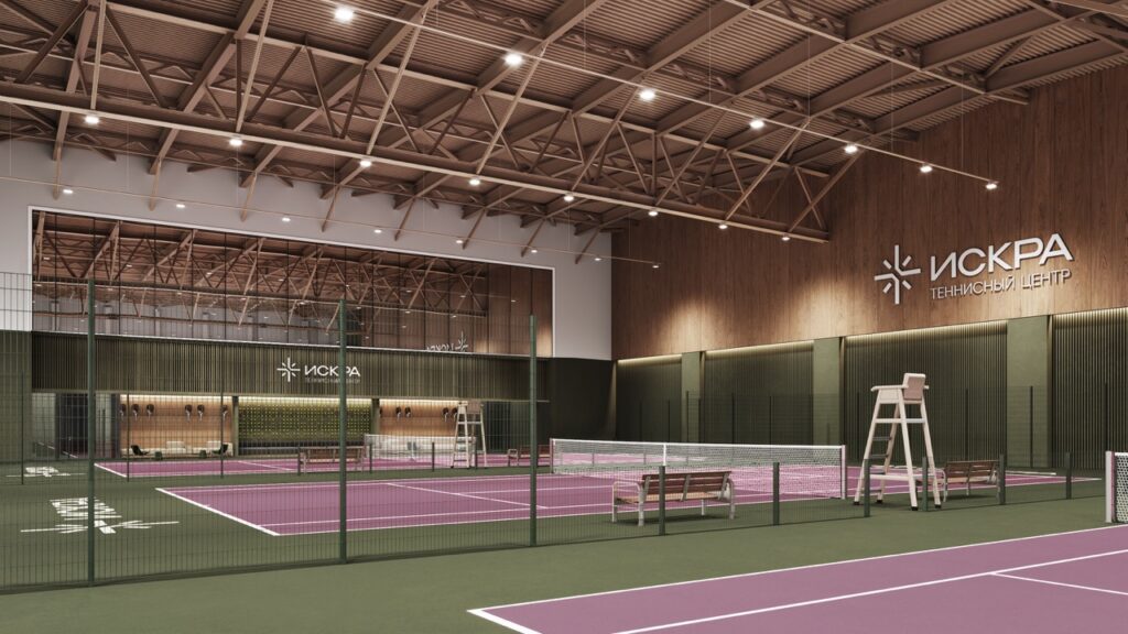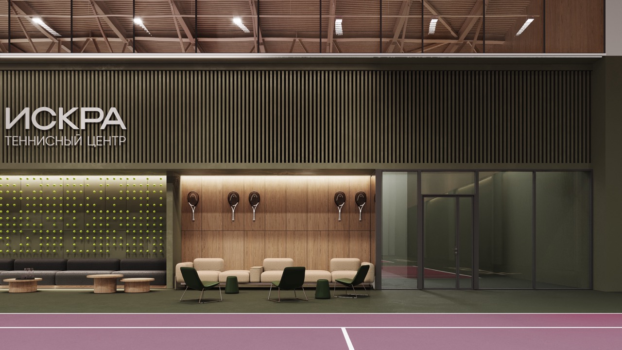 Все решает контекст. На небольшом участке это может быть один-два корта и небольшая лаунж-зона. В составе крупного комплекса — целый клуб с кафе, раздевалками, душевыми, зонами хранения инвентаря, детскими комнатами. Иногда заказчику важно, чтобы зрители могли наблюдать за игрой из теплого помещения, и тогда появляются застекленные галереи и панорамные окна. В других случаях ставится акцент на том, чтобы к корту можно было спуститься на лифте со своего этажа.