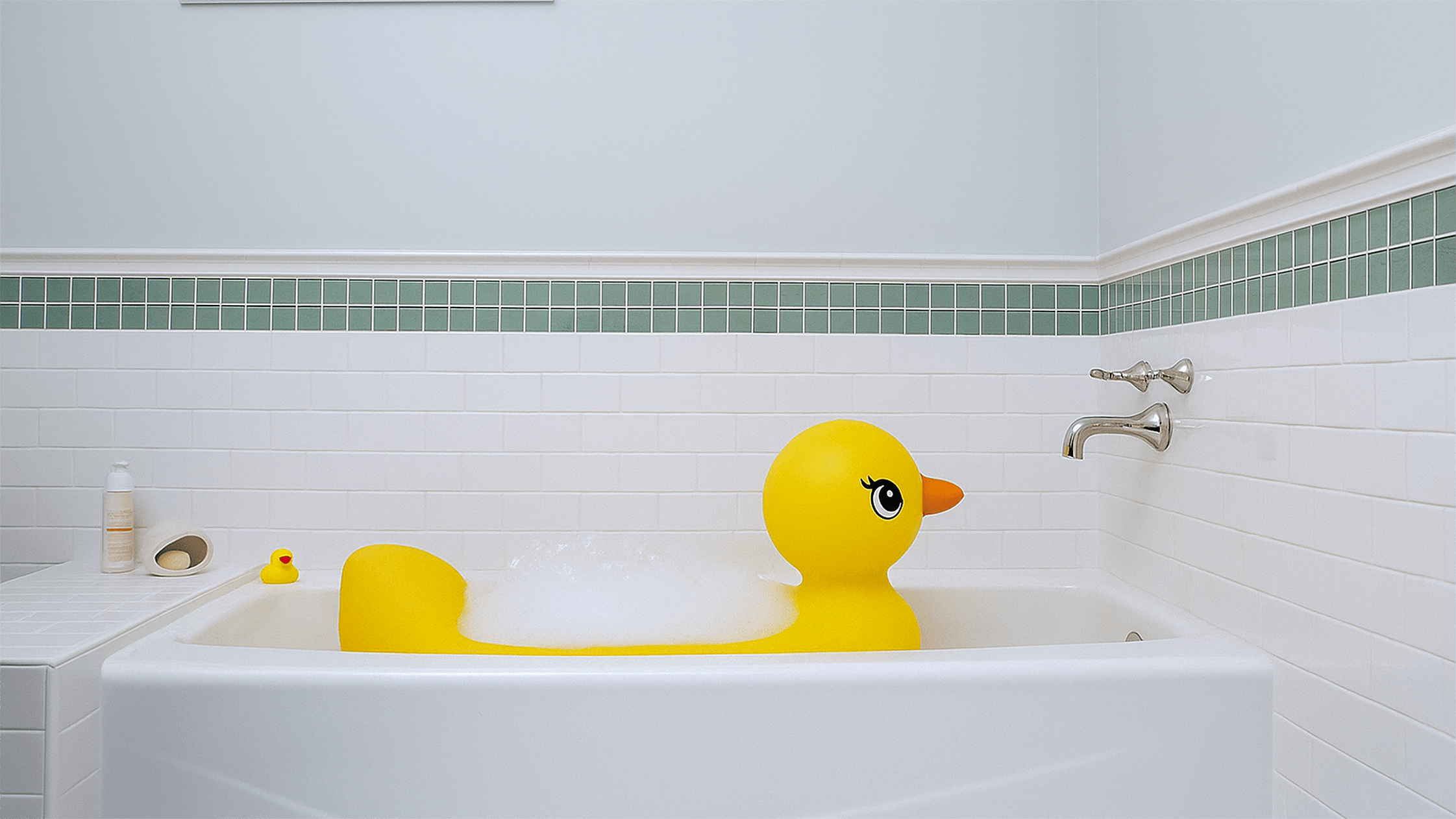 Организуется в первые месяцы в небольшой ванночке с уклоном. Ее можно ставить на столешнице в ванной рядом, на кухне или на отдельные складные ноги. Очень удобна в использовании складная ванна, потому что ее можно убрать на дневное время. Как только ребенок начнет уверенно держать спину, можно переходить на купание в ванной. Этот процесс может стать частью развивающей игры за счет наклеиваемых на стену игровых комплектов и удобного хранения игрушек для ванны.