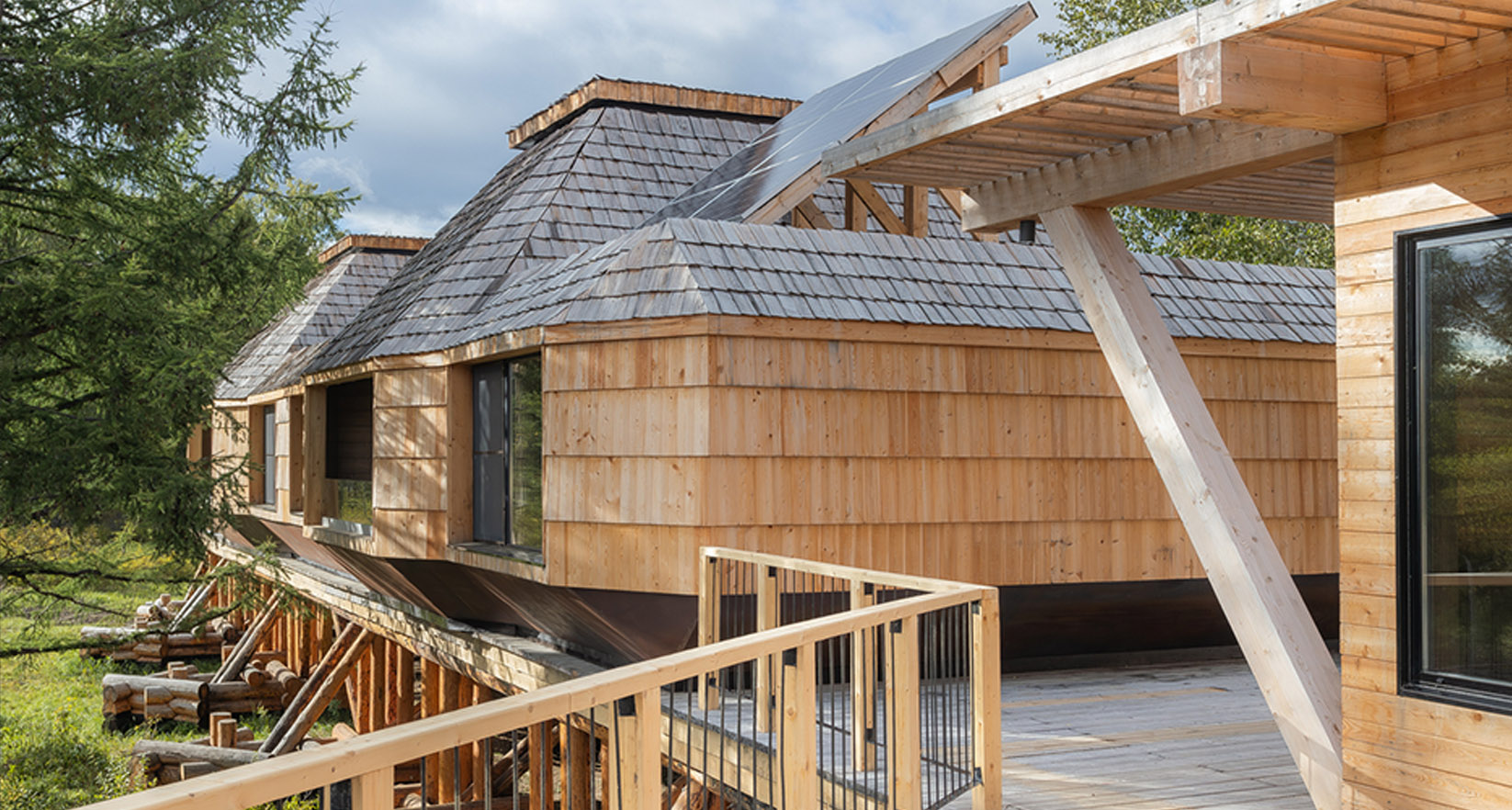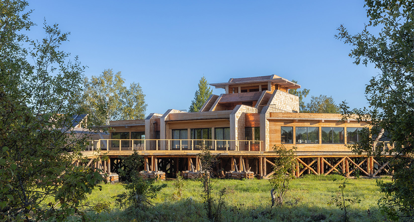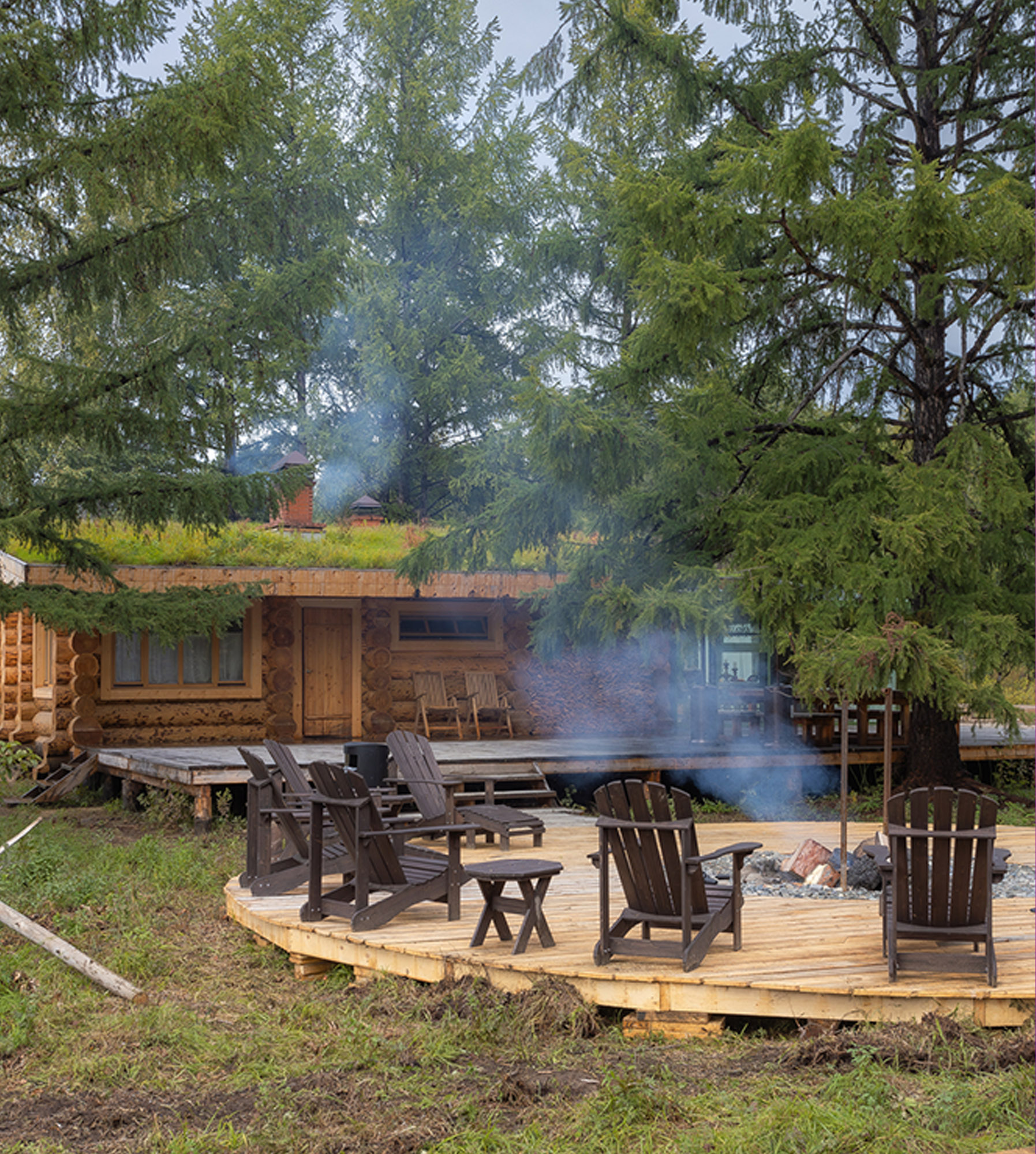Главной задачей проекта было создать уникальный отель, который станет отправной точкой знакомства с Камчаткой и станет частью этих впечатлений. Идея создать клубный отель посреди тайги стала ответом на запросы искушенных путешественников, которые заинтересованы в услугах высшего качества и получении ярких впечатлений от отдыха. Выбирая локацию, наша команда обращала внимание на удаленность и первозданность местности — здесь посетитель соприкоснется с настоящей Камчаткой.
