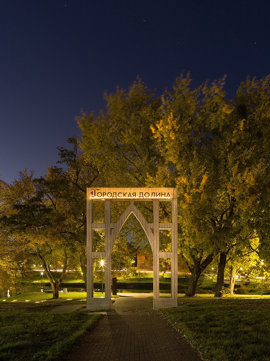 Между двумя прудами, окантованными пешеходными набережными, располагается арт-объект «Лабиринт» — полупрозрачная конструкция с металлической просечно-протяжной сеткой — оммаж формам замка Инстербург.