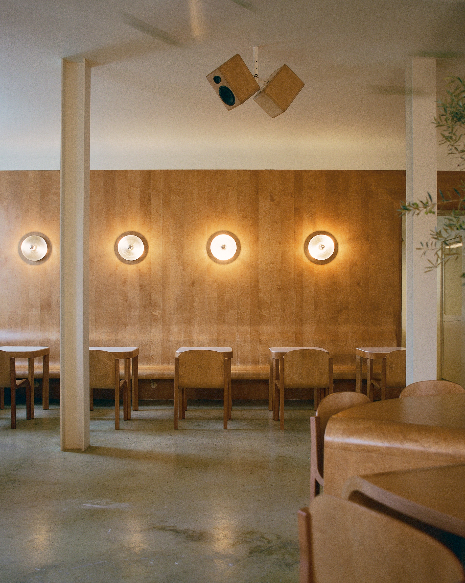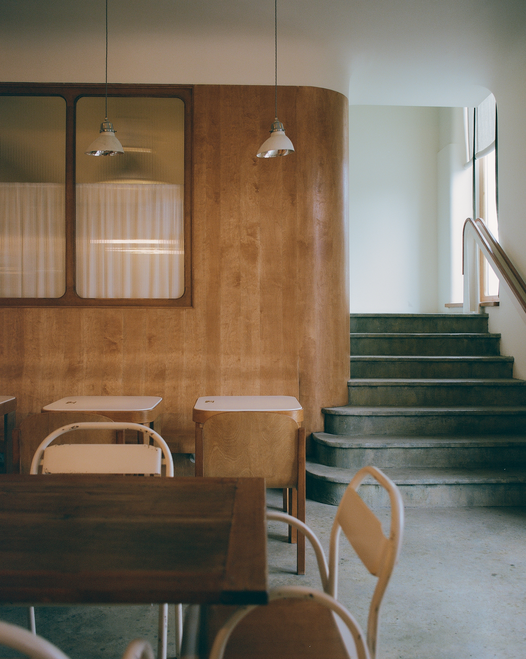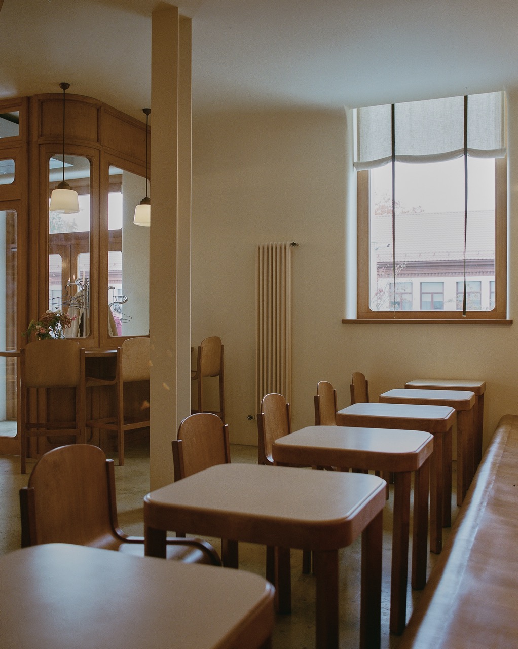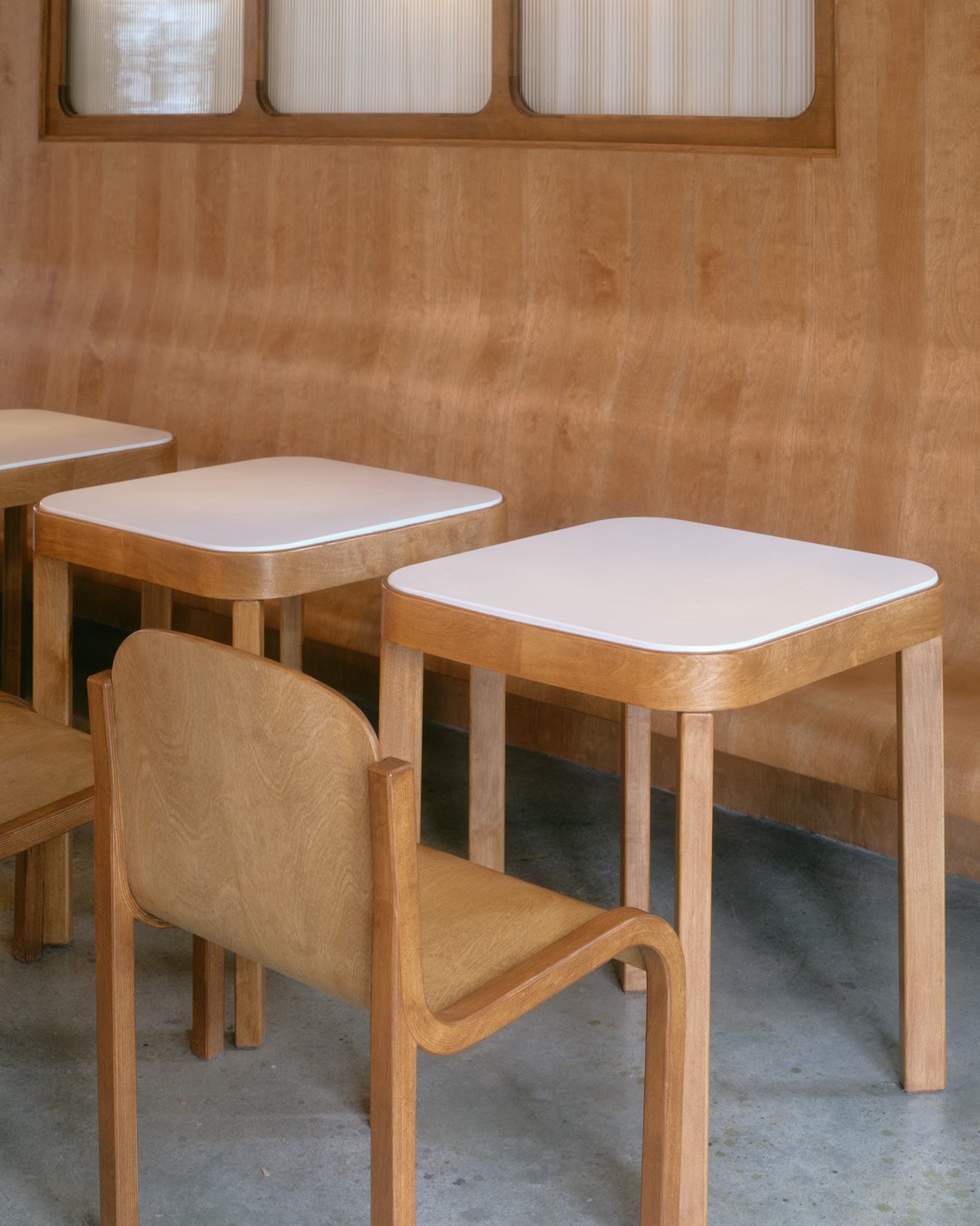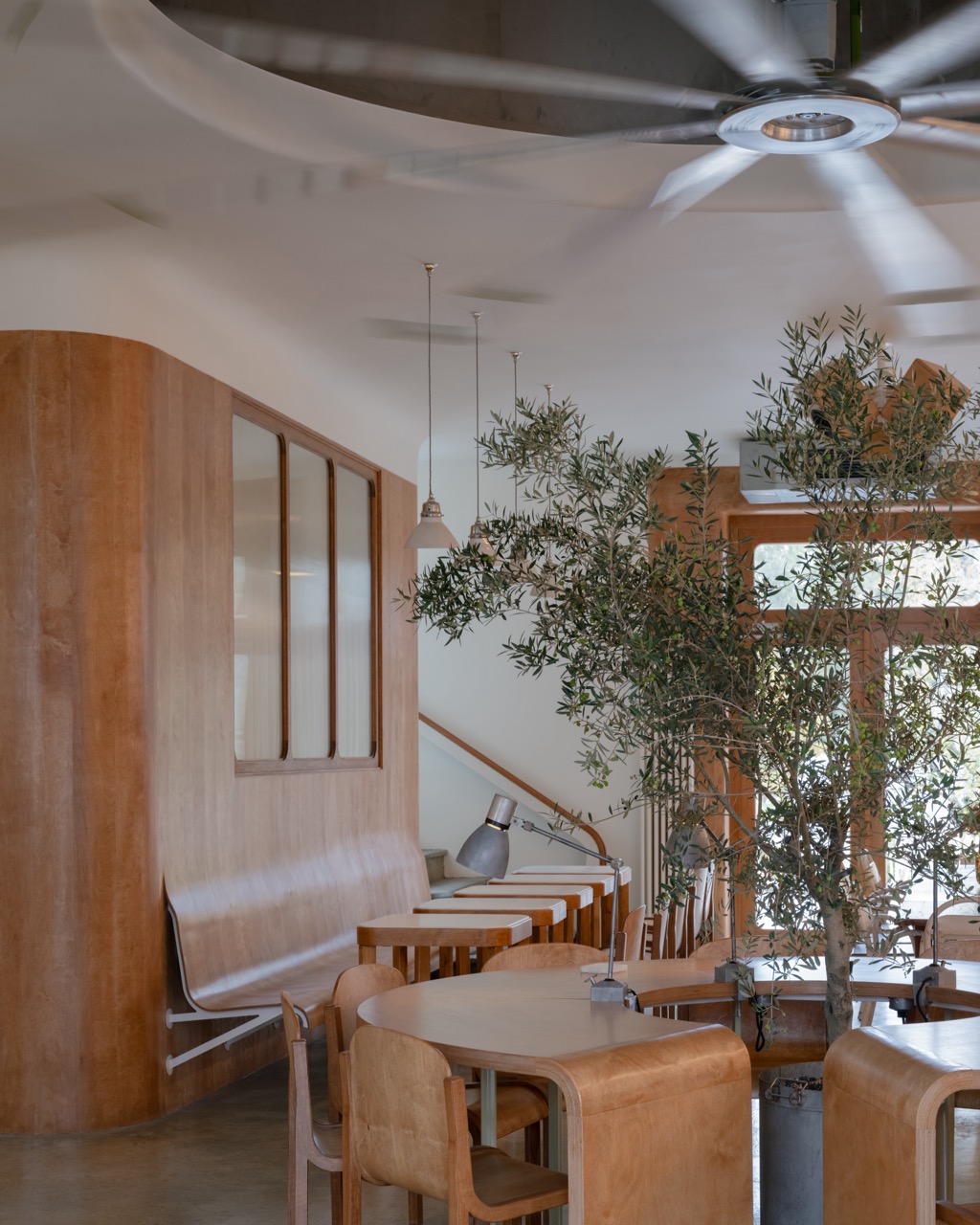 Дизайн мебели кафетерия — собирательный образ из примеров скандинавской мебели прошлого века, которая идеально вписалась в концепцию дизайна.