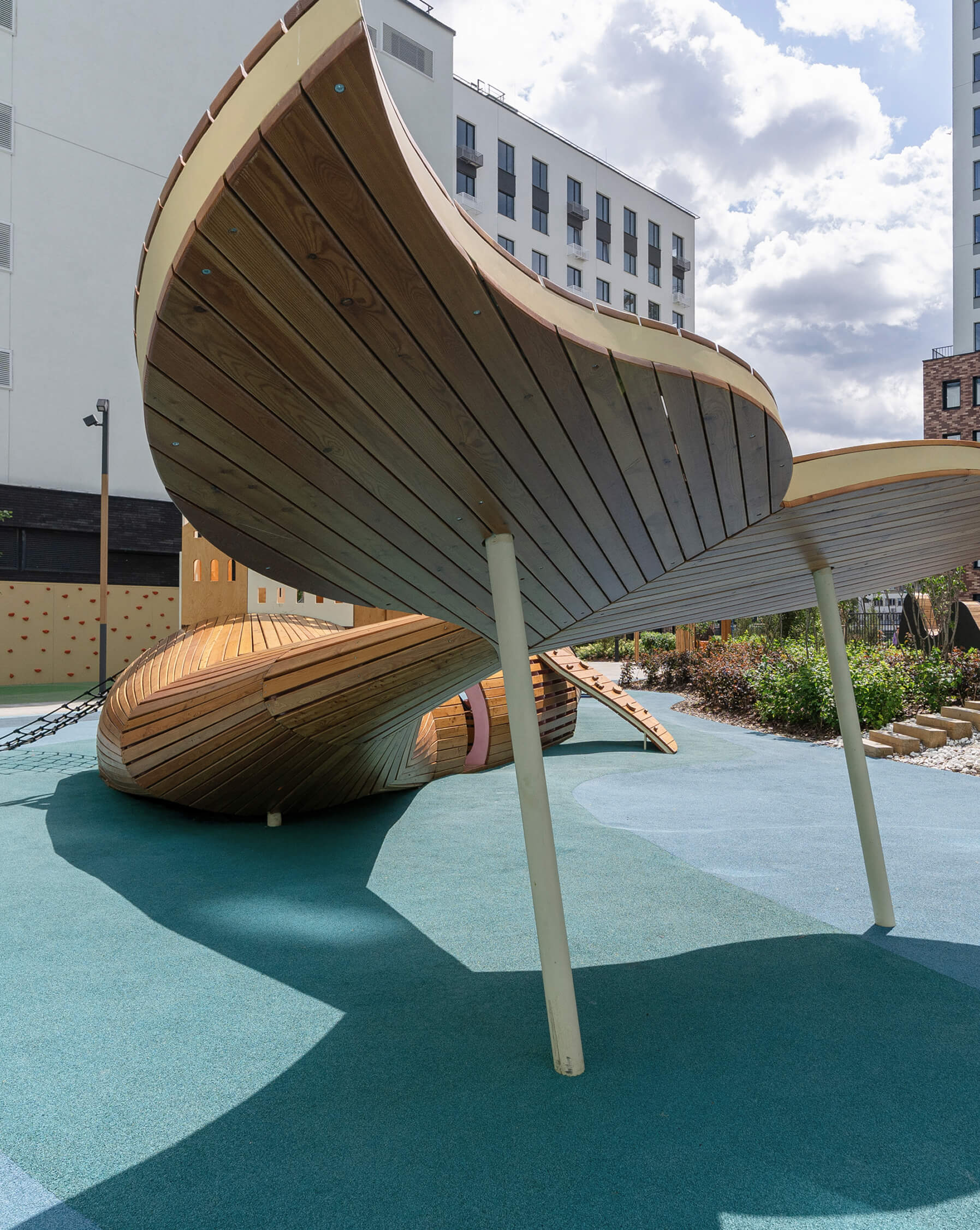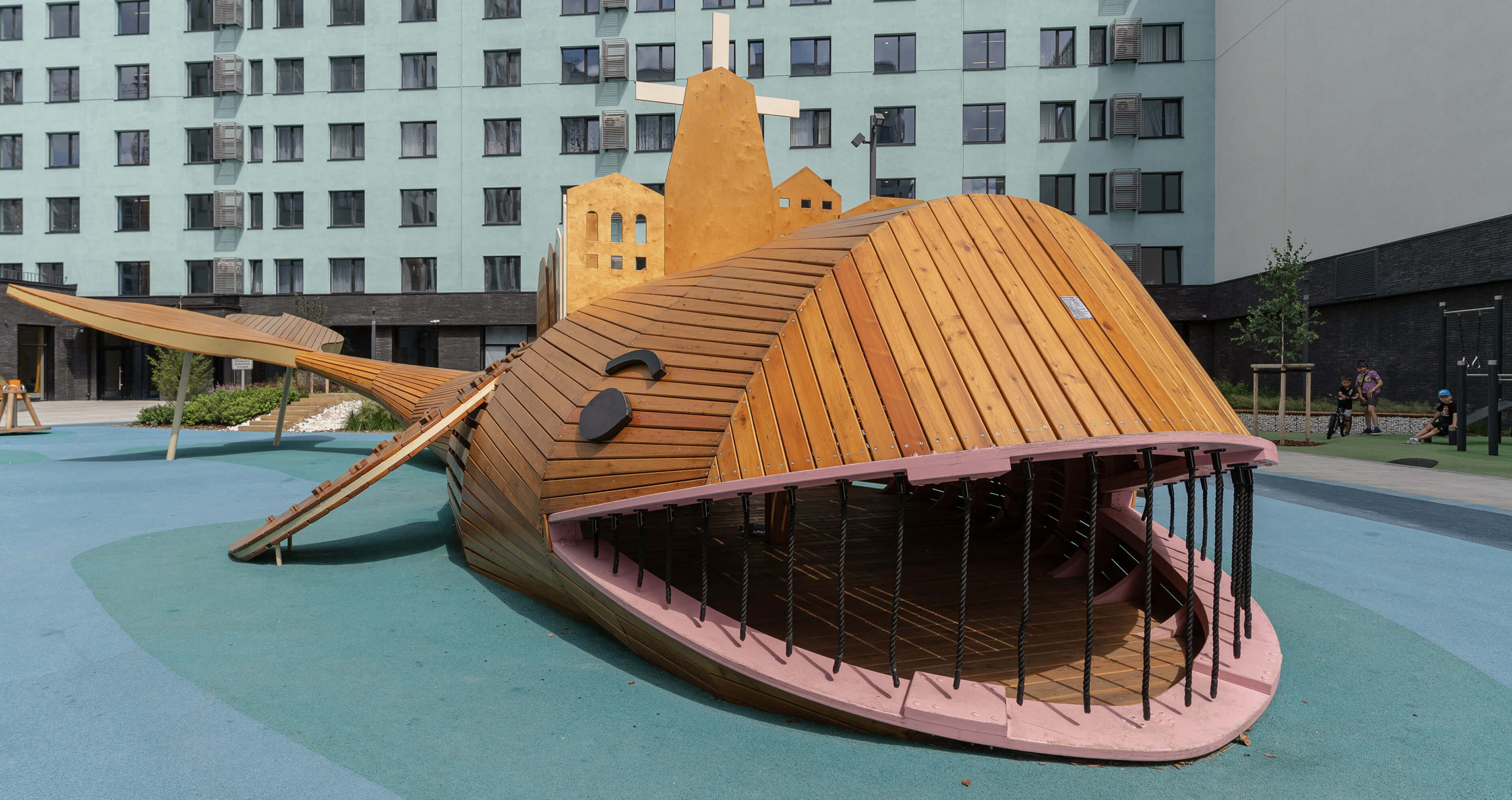 «Мы хотели, чтобы это было не просто игровое оборудование, а пространство, в которое дети смогут погружаться, придумывать собственные истории и возвращаться к ним снова и снова, — отмечает Мария Кутай. — Такой объект становится частью детской памяти и формирует чувство принадлежности — “я из двора с китом”».