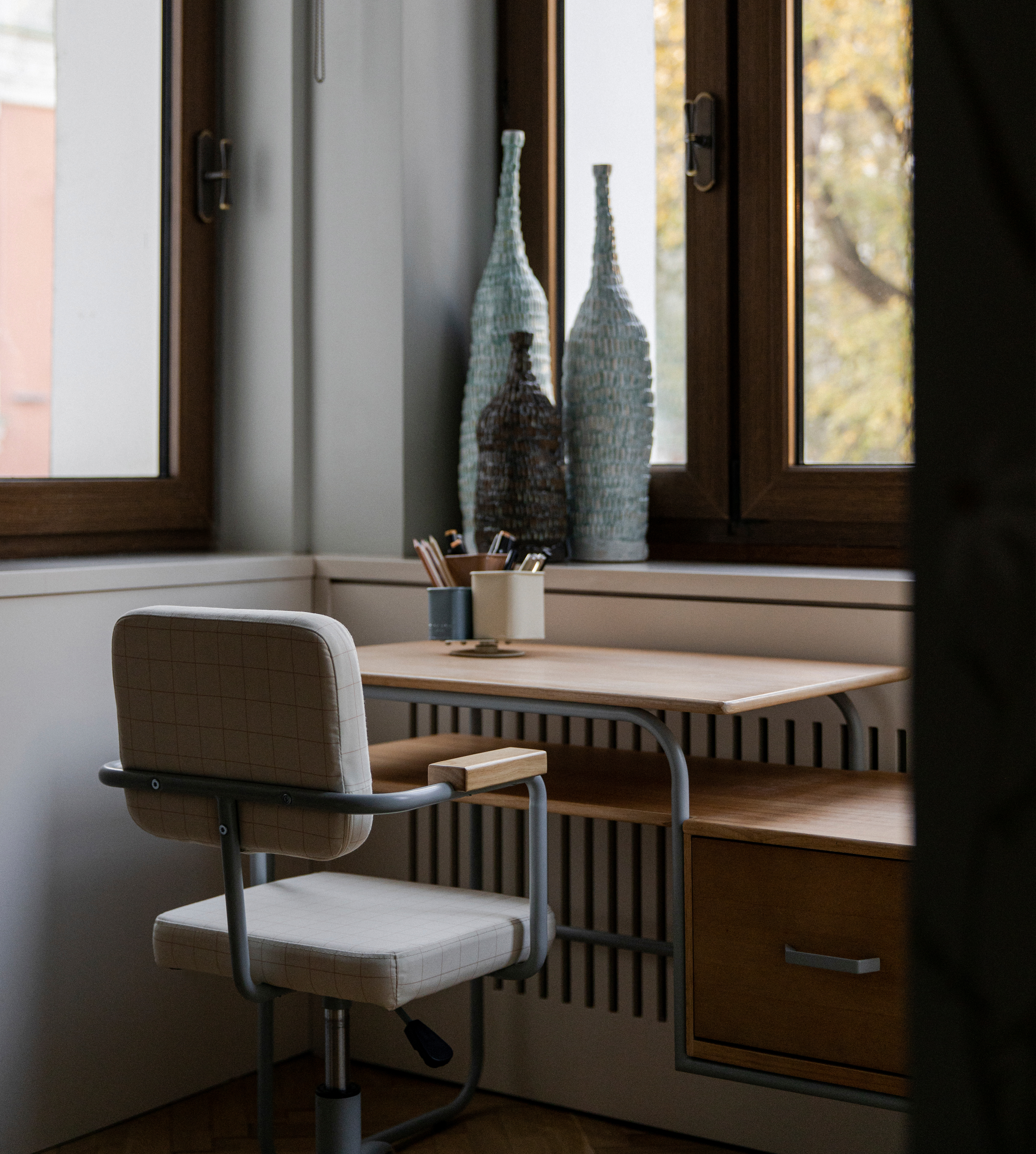 Поскольку это не проект для клиента, а личная история, то многое менялось по ходу работы. По словам Александры, проекты для себя — это всегда эксперимент с минимальным количеством чертежей и запроектированных деталей. «Есть идея — пробуем реализовать, а не получилось — адаптируем. Например, книжный шкаф появился только после того, как накопилось много книг, а мебель до сих пор постоянно обновляется. Однако самая большая сложность оказалась в поддержании порядка в детской, так как детали обстановки постоянно меняются, добавляются новые предметы и игрушки».