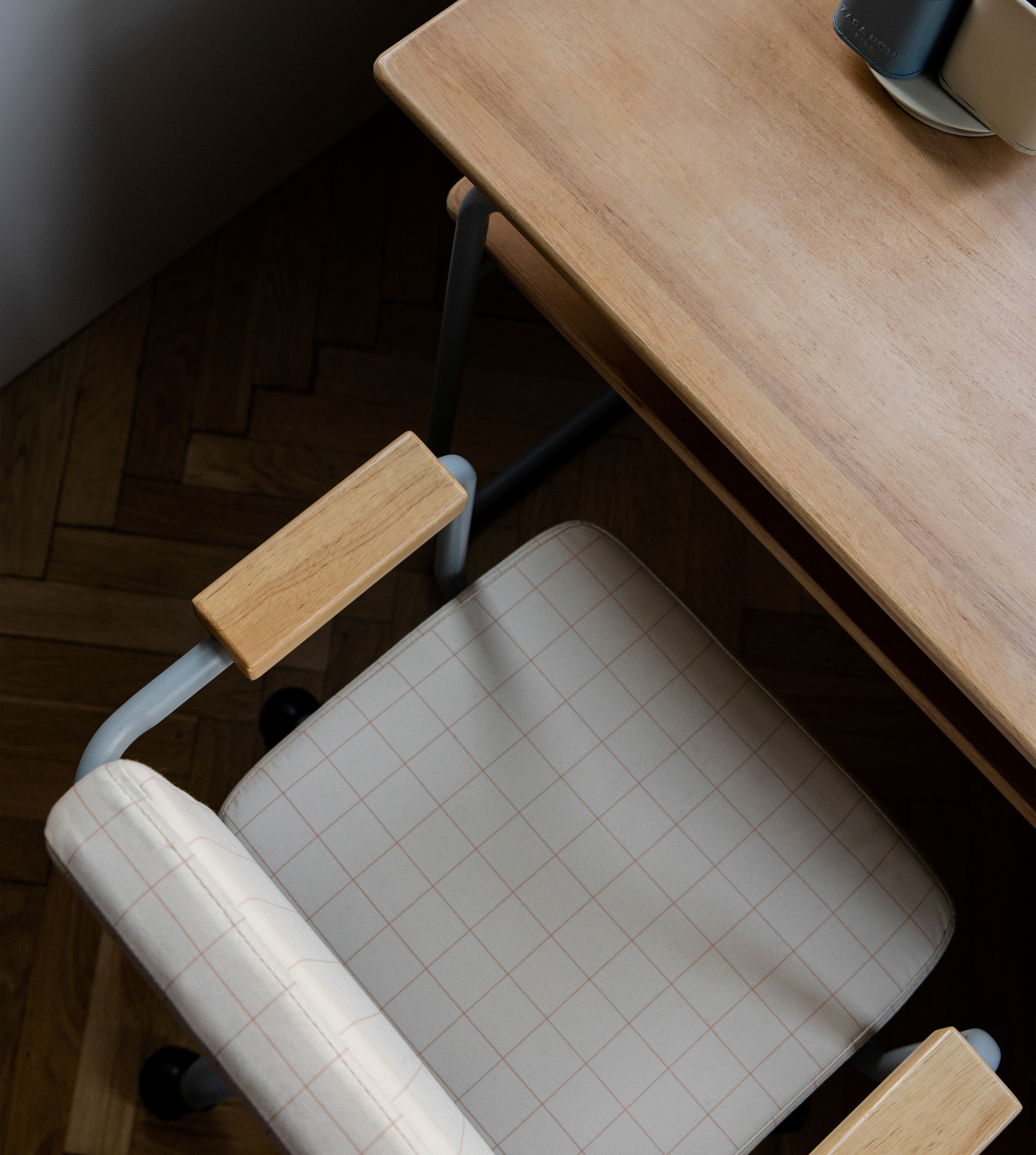 Основной идеей было создать интерьер с акцентом на текстуры и натуральные материалы: «Мы использовали джутовые ковры, рогожку, плетеные фасады, а одной из выбранных тканей стала букле — грубая ткань полотняного переплетения, визуально отсылающая к шерсти барашка. Конечно, по мере продвижения работы у Алии появились и другие мягкие игрушки, которые также повлияли на выбор материалов. Палитра получилась сдержанной и однотонной, но разнообразной по фактуре» — поясняет Александра.