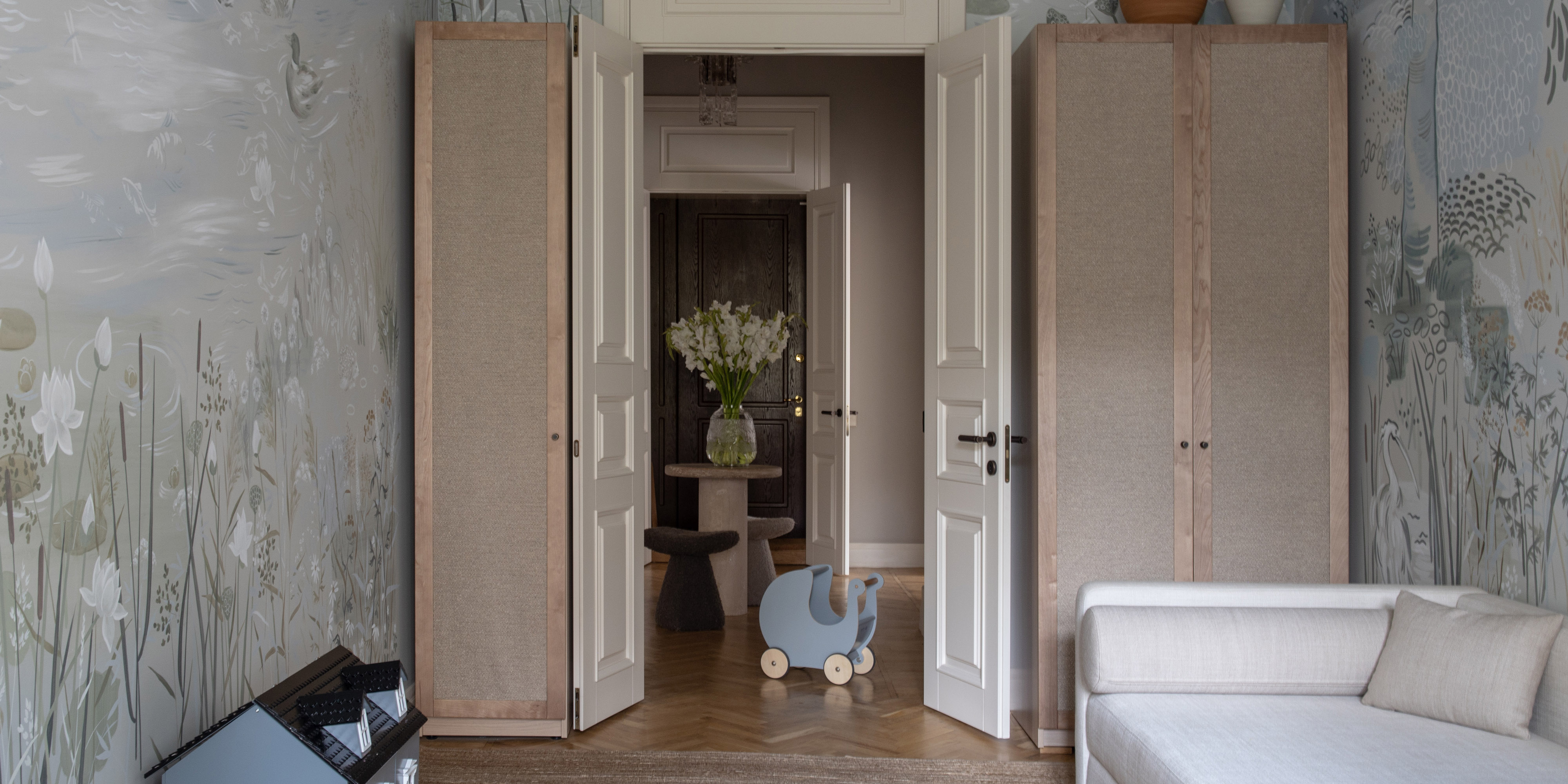 Все началось с игрушки Bonpoint в виде барашка, которая стала вдохновением для создания общего дизайна детской. Этот предмет напомнил Александре о семейной ферме прадедушки Алии в Белоруссии, где девочка проводила лето, играя и наблюдая за домашними животными, в том числе и за новорожденными барашками. Получилась история, завязанная на семейных традициях, на связи с теплыми детскими воспоминаниями.