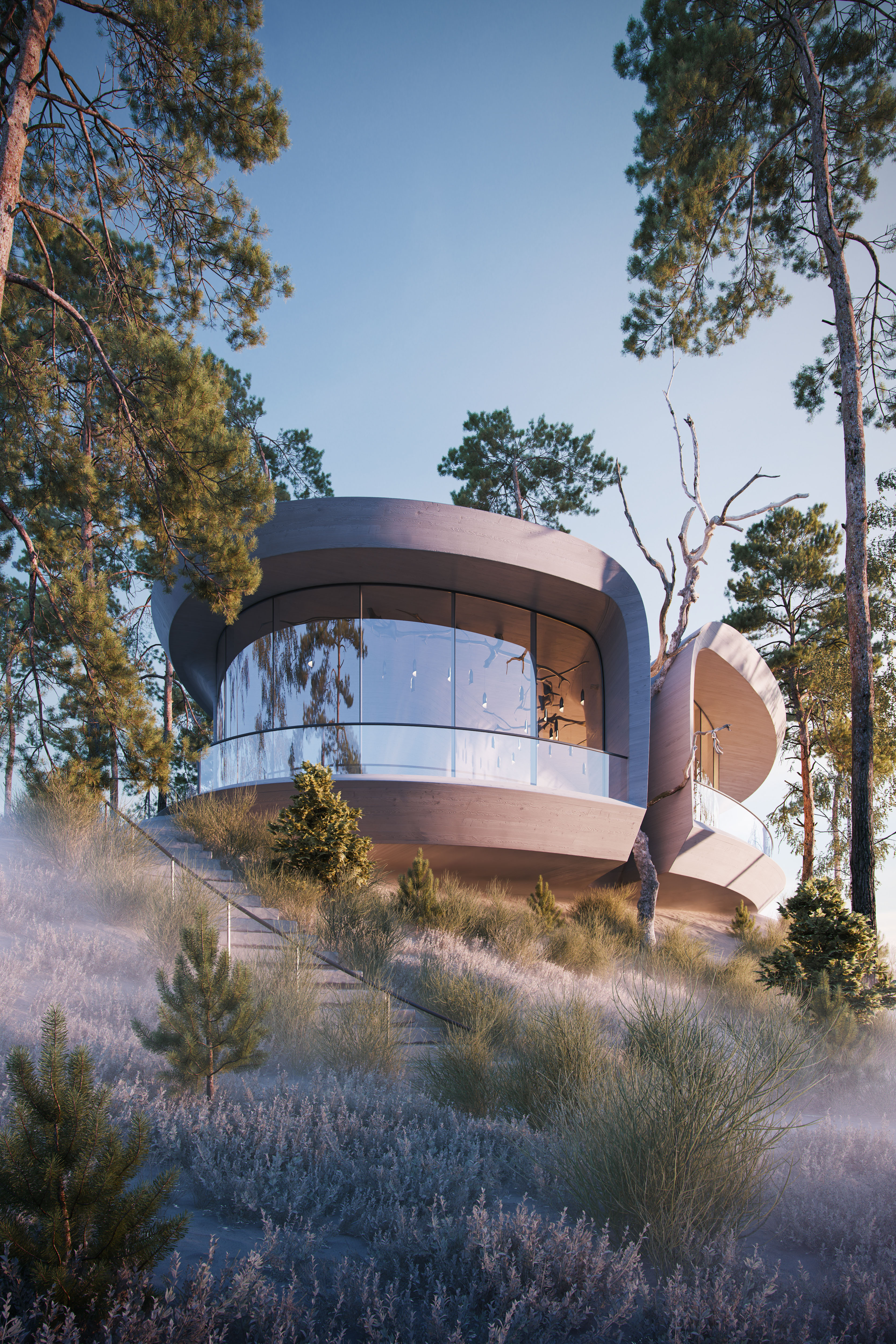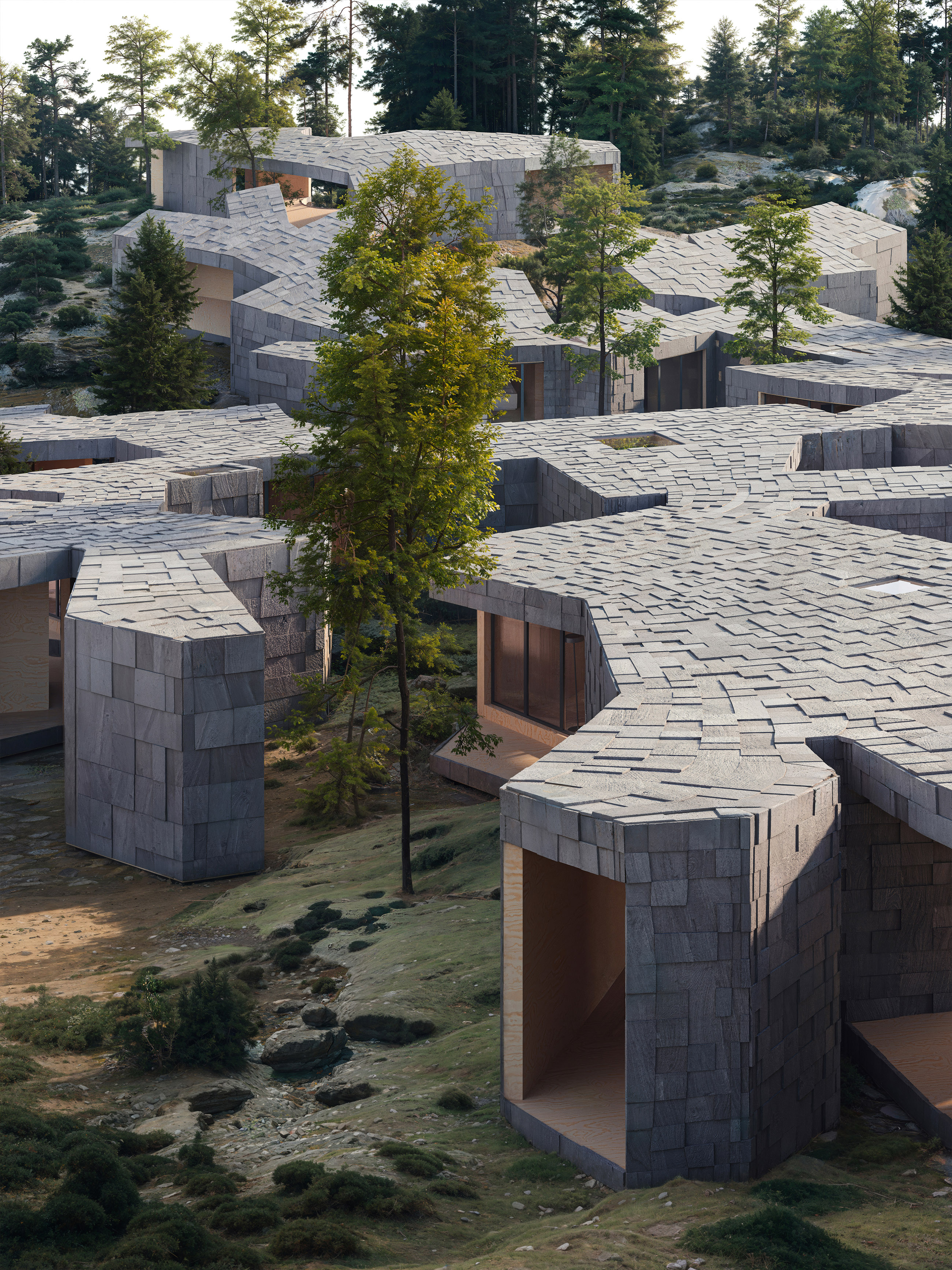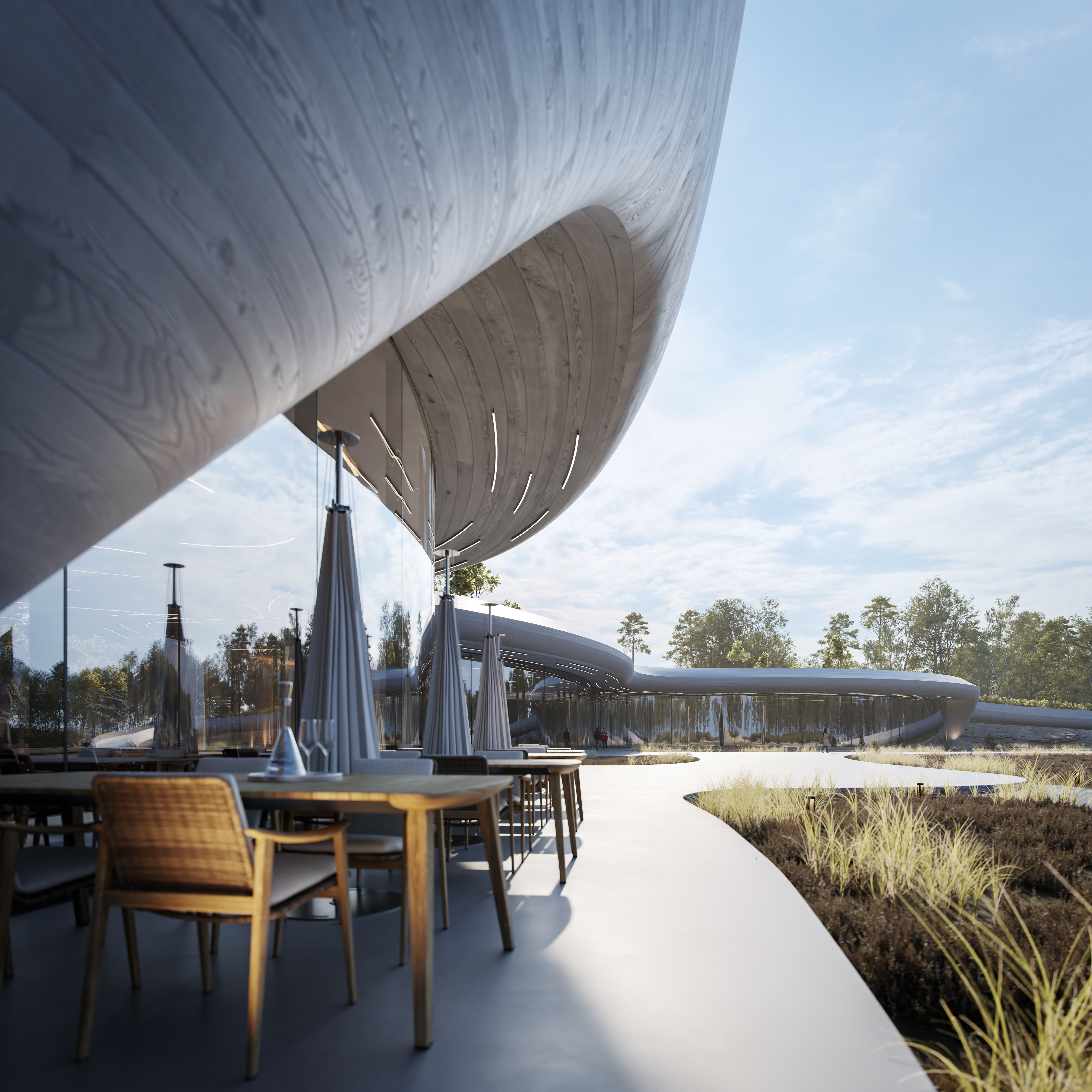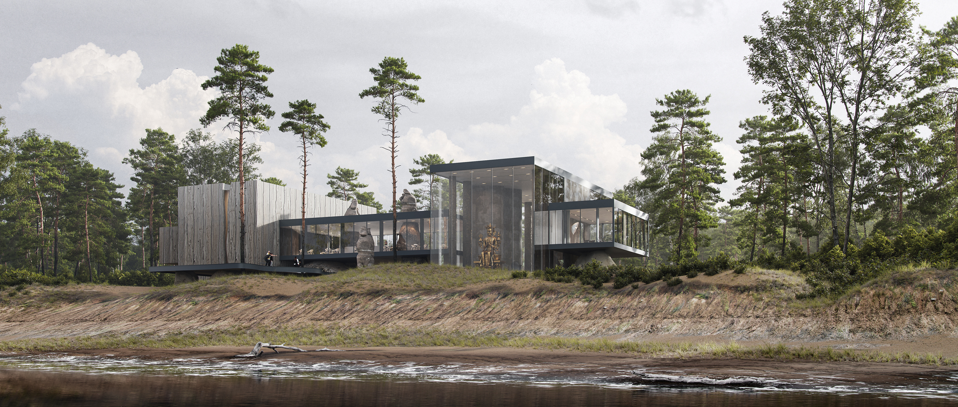 «Мы проектировали архитектуру как систему взаимодействия с местом. Наша задача — не оставить след, а раскрыть то, что уже есть. Мы хотим, чтобы архитектура говорила шепотом, а не кричала. Чтобы здание «вслушивалось» в местность», — сооснователь бюро Ильдар Гиниятов.