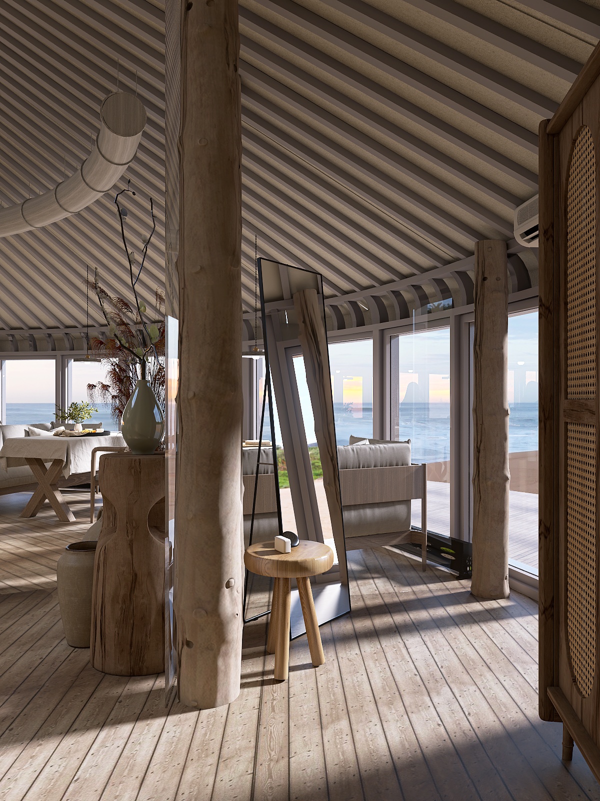 Архитектурная концепция комплекса обращается к природе Байкала. Одним из визуальных кодов является дерево. Например, в гостинице материал обыгран мягкими пластичными линиями, продолжая и развивая пластику welcome-центра.