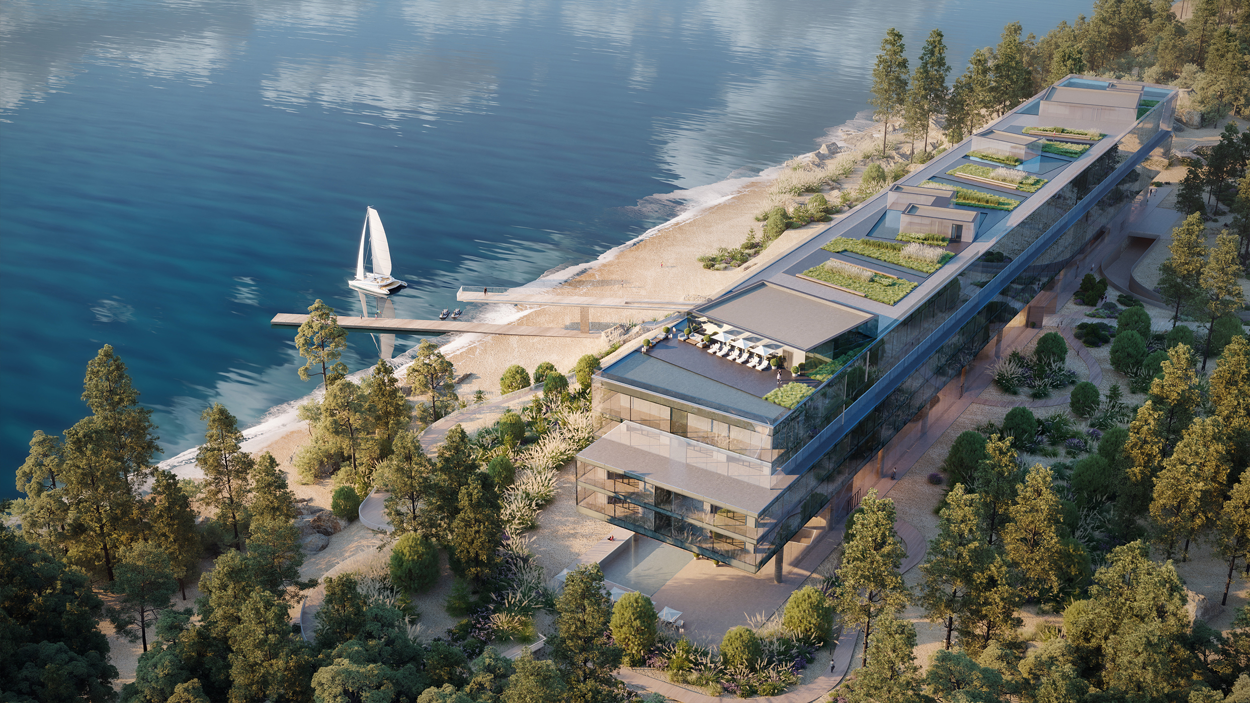 Проект разбит на два больших кластера — прибрежный и горный, соединенные дорогой. В состав комплекса входят научный музей и исследовательский центр, ландшафтный парк с ленд-артом, резиденция художников, центр духовного развития, кафе и рестораны, курорт с разными форматами проживания и богатой инфраструктурой.