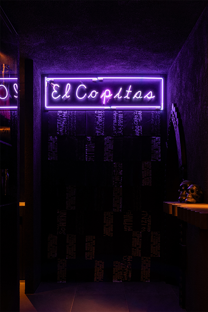 Мистический интерьер бара пронизан легендами и отсылками к мексиканской культуре. Один из основополагающих образов старого El Copitas – портрет Фриды Кало – обрел новое прочтение. Теперь он проявляется тонкой линией на одной из стен основного зала, словно тот самый лик Девы Хукилы из легенды о сожженной церкви в Оахаке.
