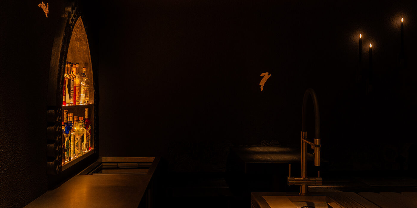 Основой обновленного бара стал образ мистического сакрального пространства, возродившегося после сожжения и сохранившего все свои святыни.