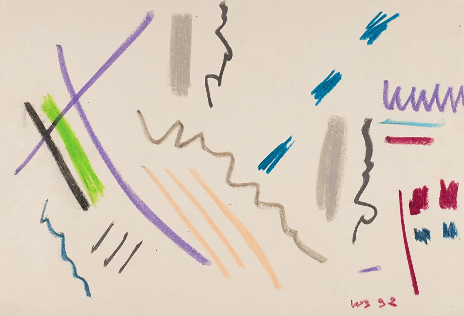 В работе Юрия Злотникова из серии «Пространственные конструкции» геометрия, унаследованная от авангарда, распадается на пульсирующие линии и цветовые поля. В контексте перегруженного декором пространства они сработали как визуальные паузы. Цвет здесь берет на себя архитектурную функцию: он собирает пространство, задает ритм, формирует движение взгляда.