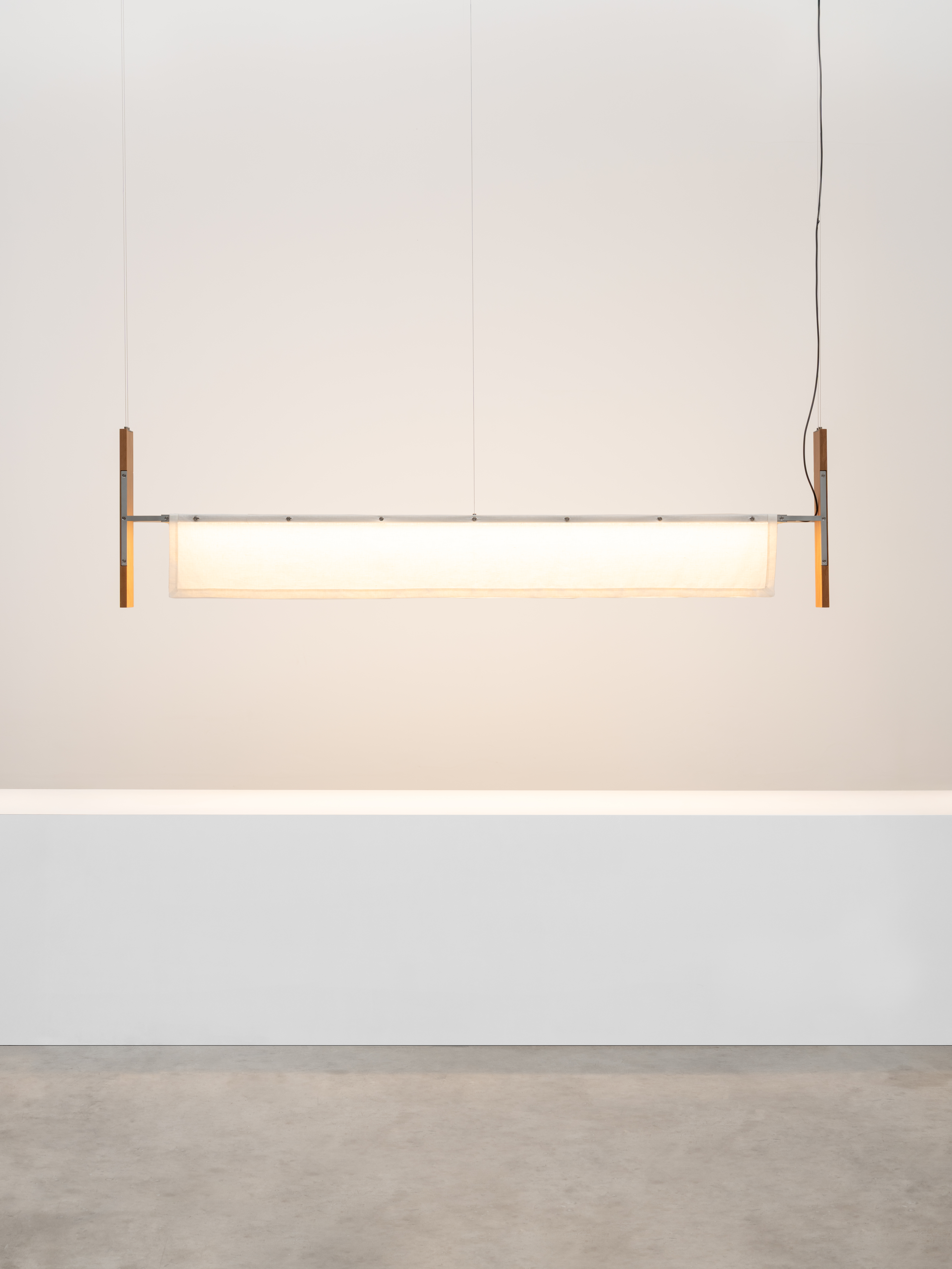 Так, в светильники интегрированы прямоугольные LED-панели — их пропорции отсылают к экранам мобильных устройств и портативных компьютеров. Эти сопоставления становятся инструментом исследования: как привычные нам предметы трансформируются со временем.