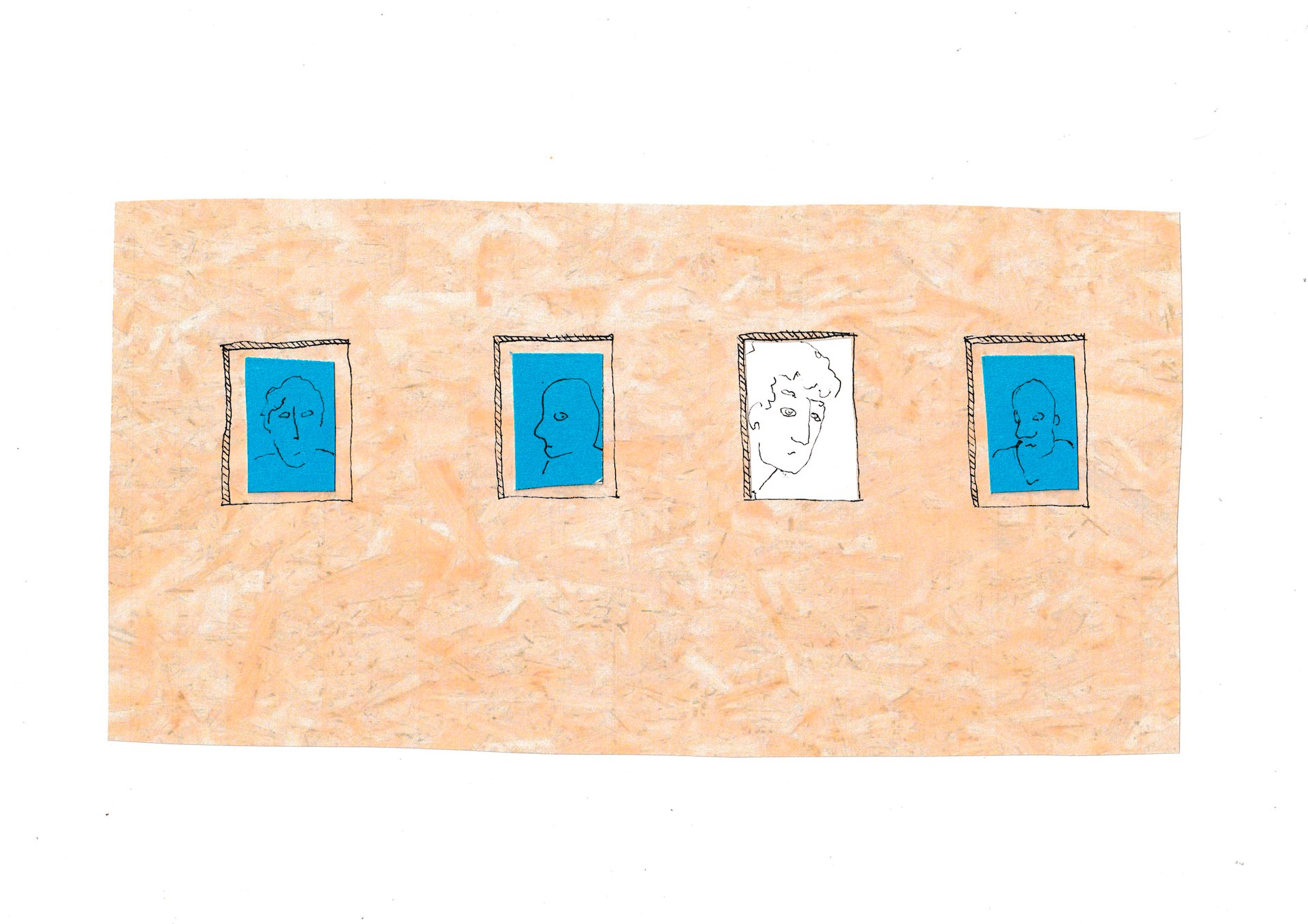 Пространственный замысел выставки начала формироваться во время поездки во Владикавказ, куда мы отправились вместе с кураторами и художниками на закрытие арт-резиденций. Первые наработки я сразу отправляла в Москву Денису Гаврилину — соавтору проекта, чтобы он начал предавать этой идее материальность. В последние выходные августа мы оказались внутри процесса, когда каждый вечер в одном из трех локаций — в хадзарах, в разных районах города, проходили завершающие события арт-программы: дворовой киносеанс, перформативный театр и вернисаж с портретами всех жителей огромного двора.