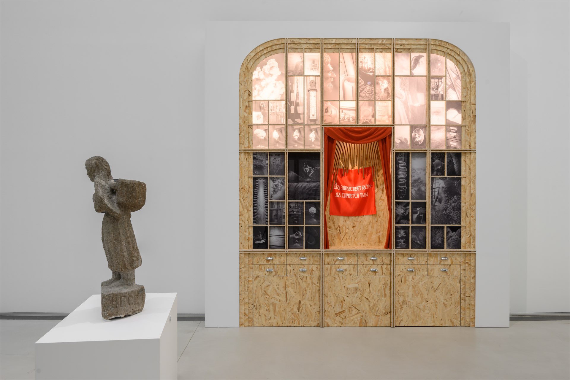 Отдельное значение имели поездки по окрестностям и посещение культурных институций. Например, старинные дубовые витрины Музея Горского государственного аграрного университета легли в основу инсталляции с работами Федора Телкова, которую спроектировал мой соавтор Денис Гаврилин.
