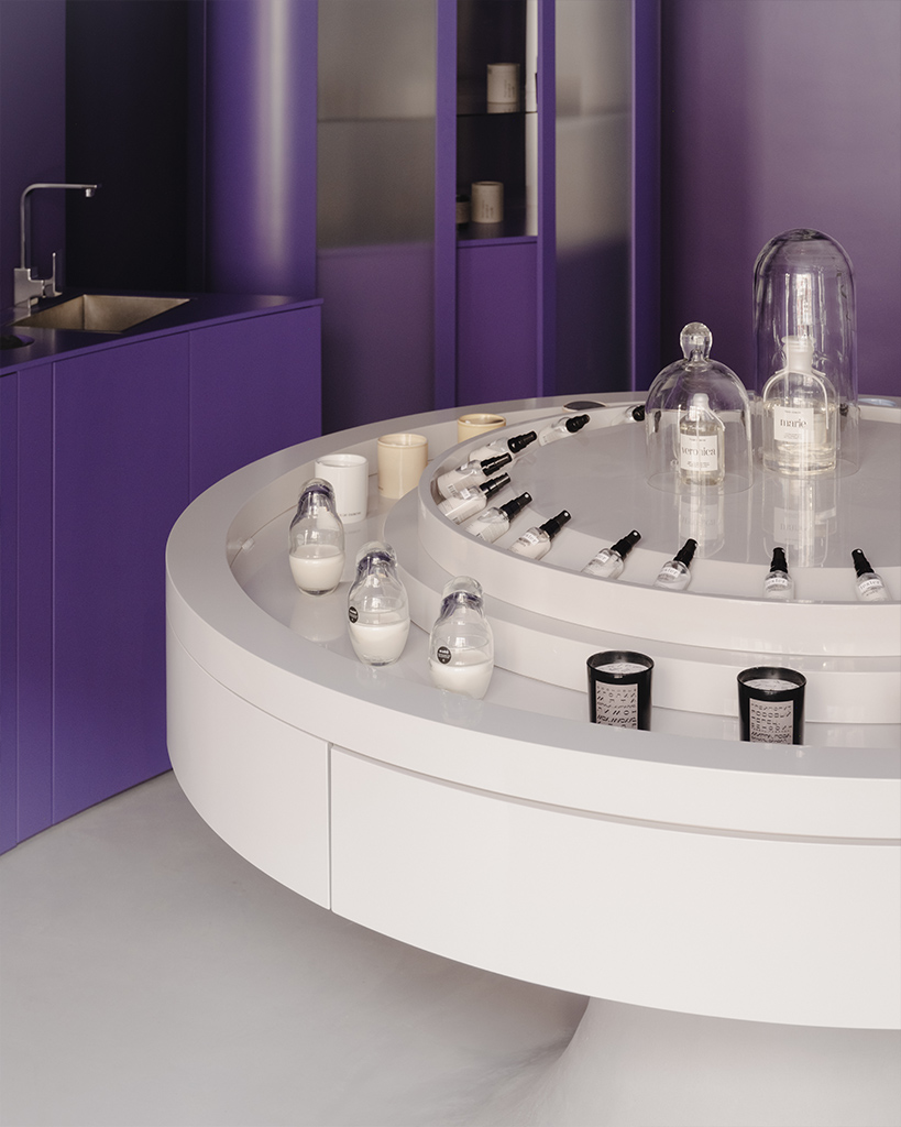 Пространство объединяет чистоту линий и выразительные акцентные элементы, которые хочется изучать. Оно побуждает посетителей исследовать этот уникальный мир, погружаясь в атмосферу, где архитектура и аромат сливаются в единое целое.