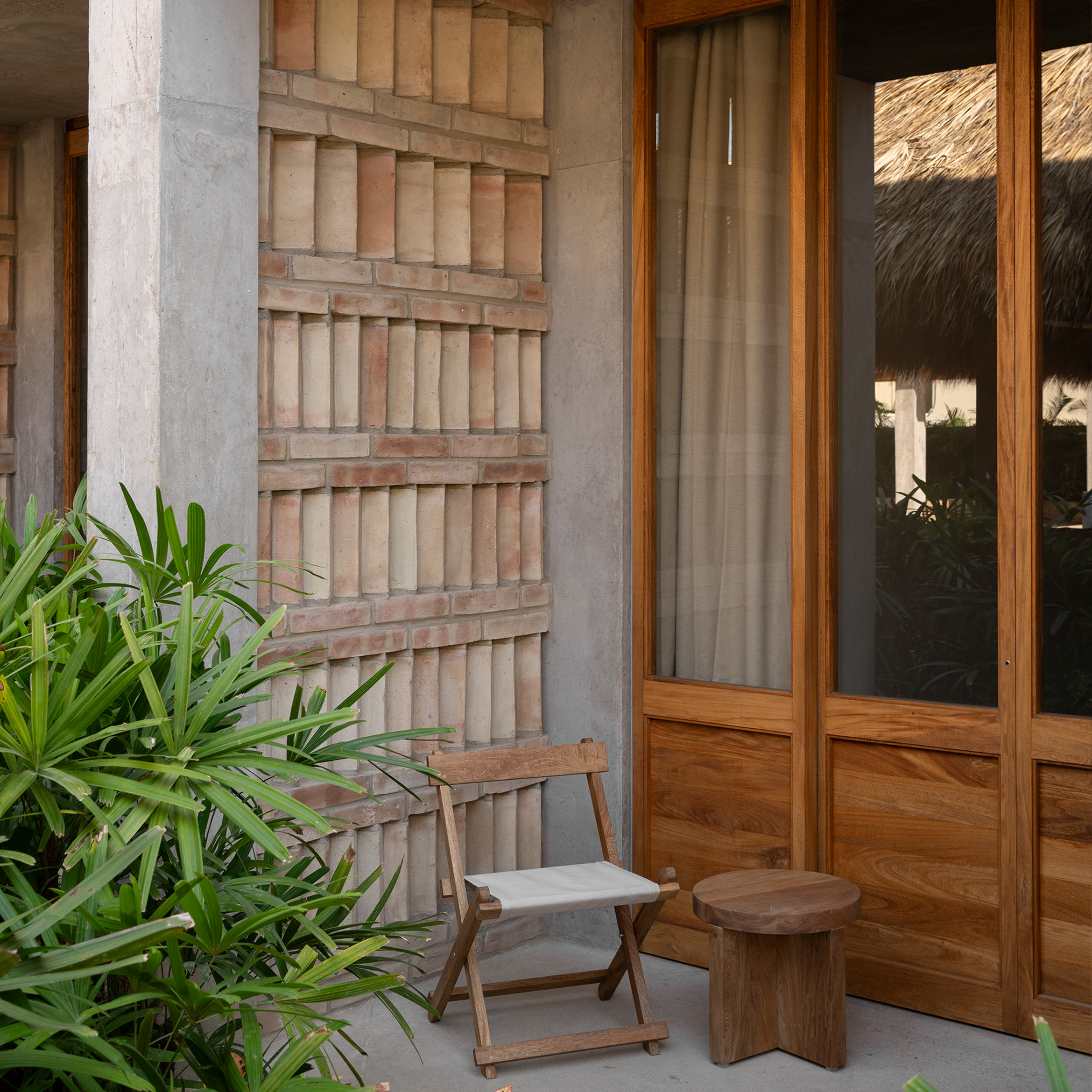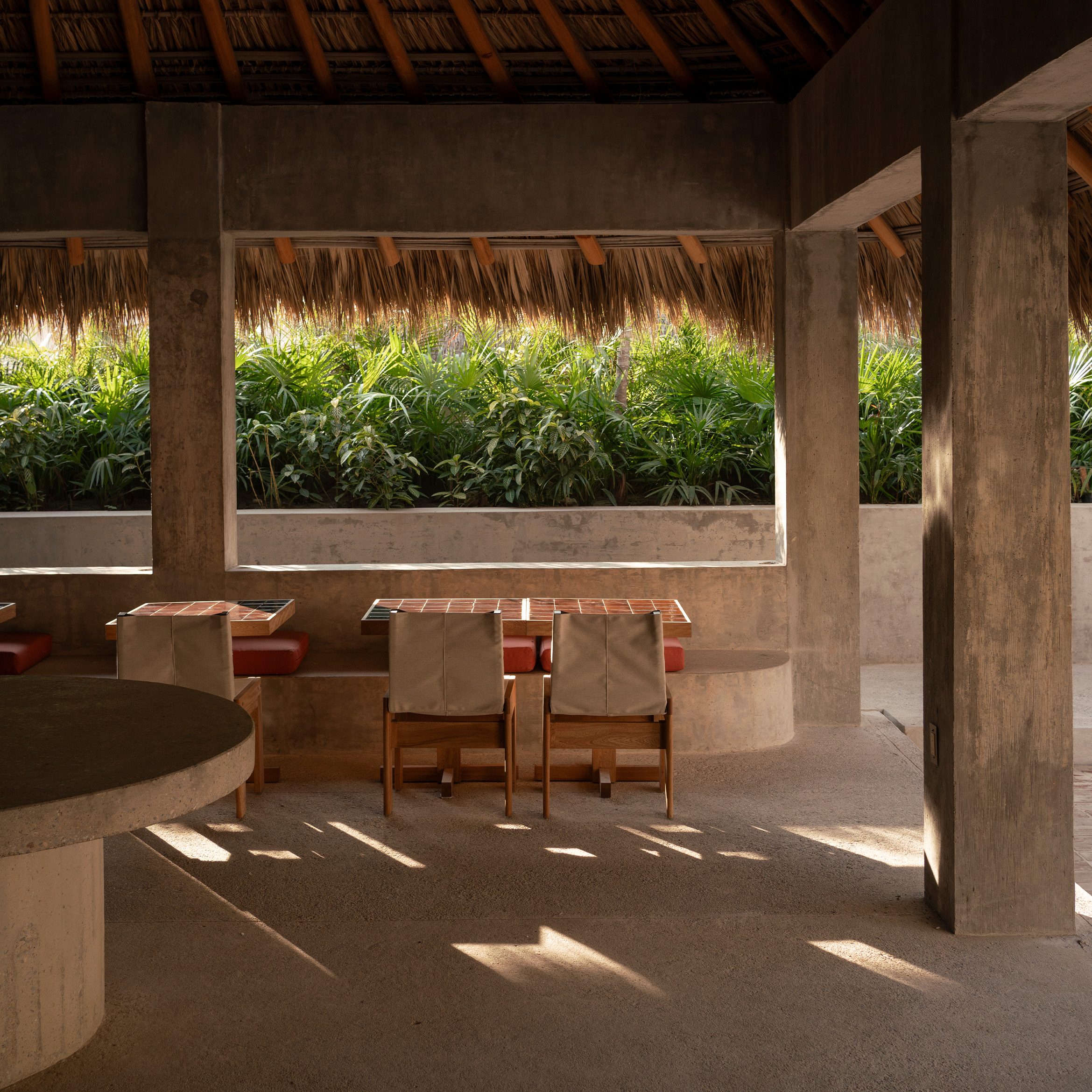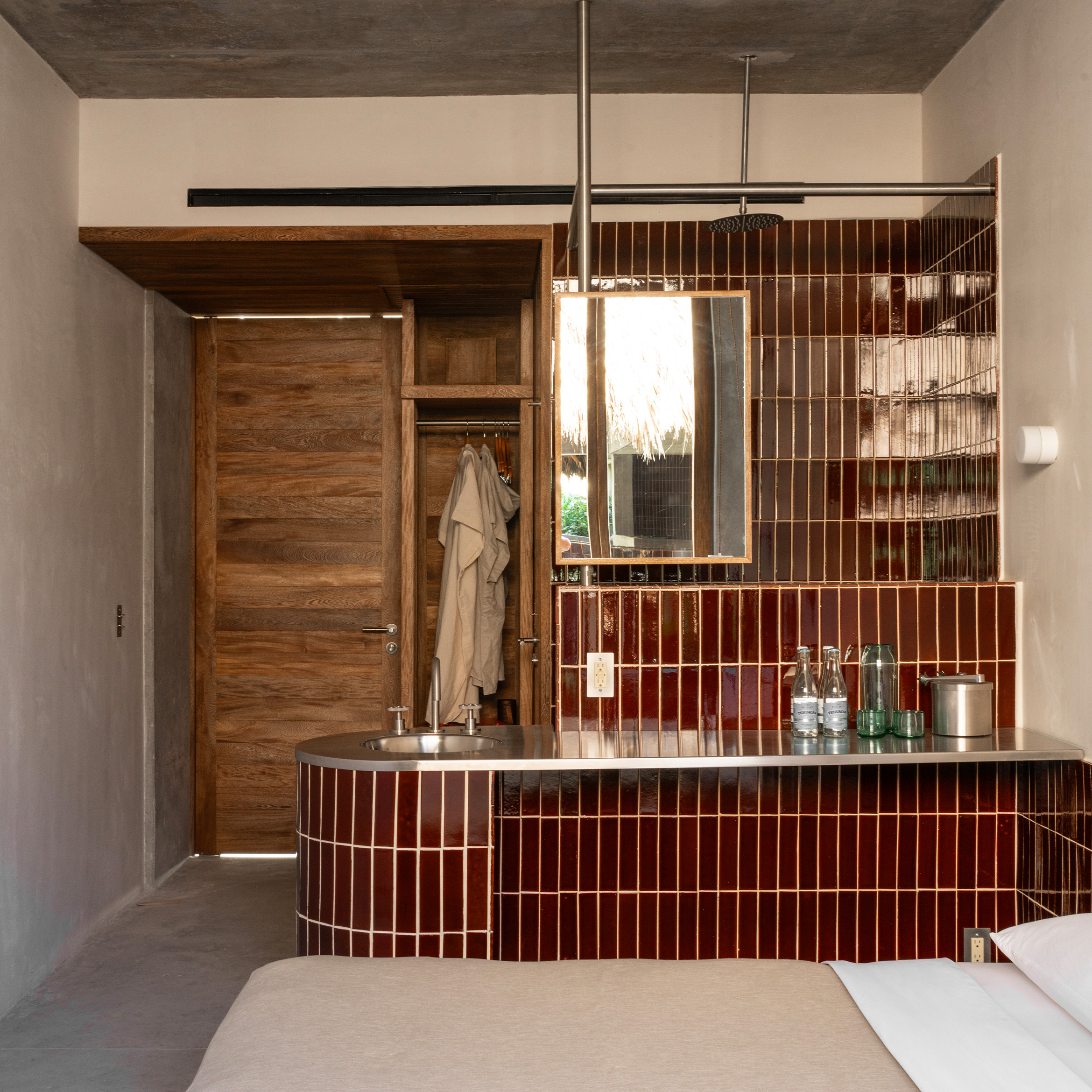 Архитектура отеля сочетает брутальность бетонных конструкций с теплотой традиционных для региона материалов — глины и натурального дерева. Каждый из 39 номеров оформлен с использованием мебели ручной работы и текстиля насыщенных терракотовых оттенков. Особое внимание уделено деталям: плитка глубокого винного цвета, рисунки мексиканского архитектора Лусио Муниаины и кирпич-сырец, используемый для стен и перегородок и создающий красивую игру света и тени. В ряде номеров и сьютов предусмотрен бассейн и балконы с видом на тропическую растительность и океан.