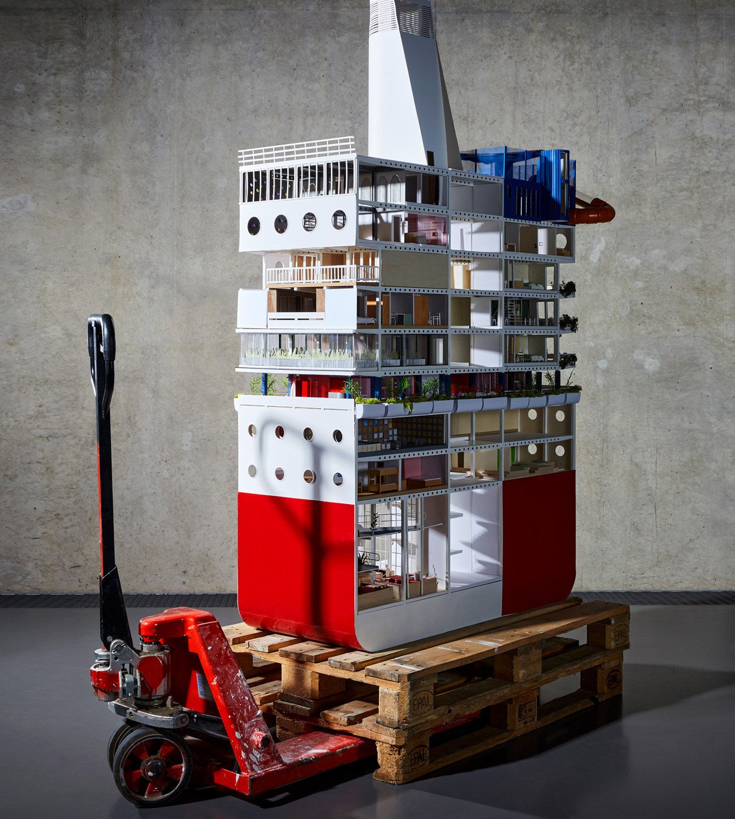 Студентам бакалавриата высшей школы искусства и дизайна Женевы (HEAD Genève) было предложено преобразовать часть круизного лайнера, вышедший из строя и подлежащий переработке, в минимальные единицы жилья, использующиеся для беженцев. Студенты самостоятельно сформулировали бриф своих жилых ячеек, разработали квартиры и общественные пространства в заданных рамках, сделали прототипы ключевых элементов в масштабе 1:1.