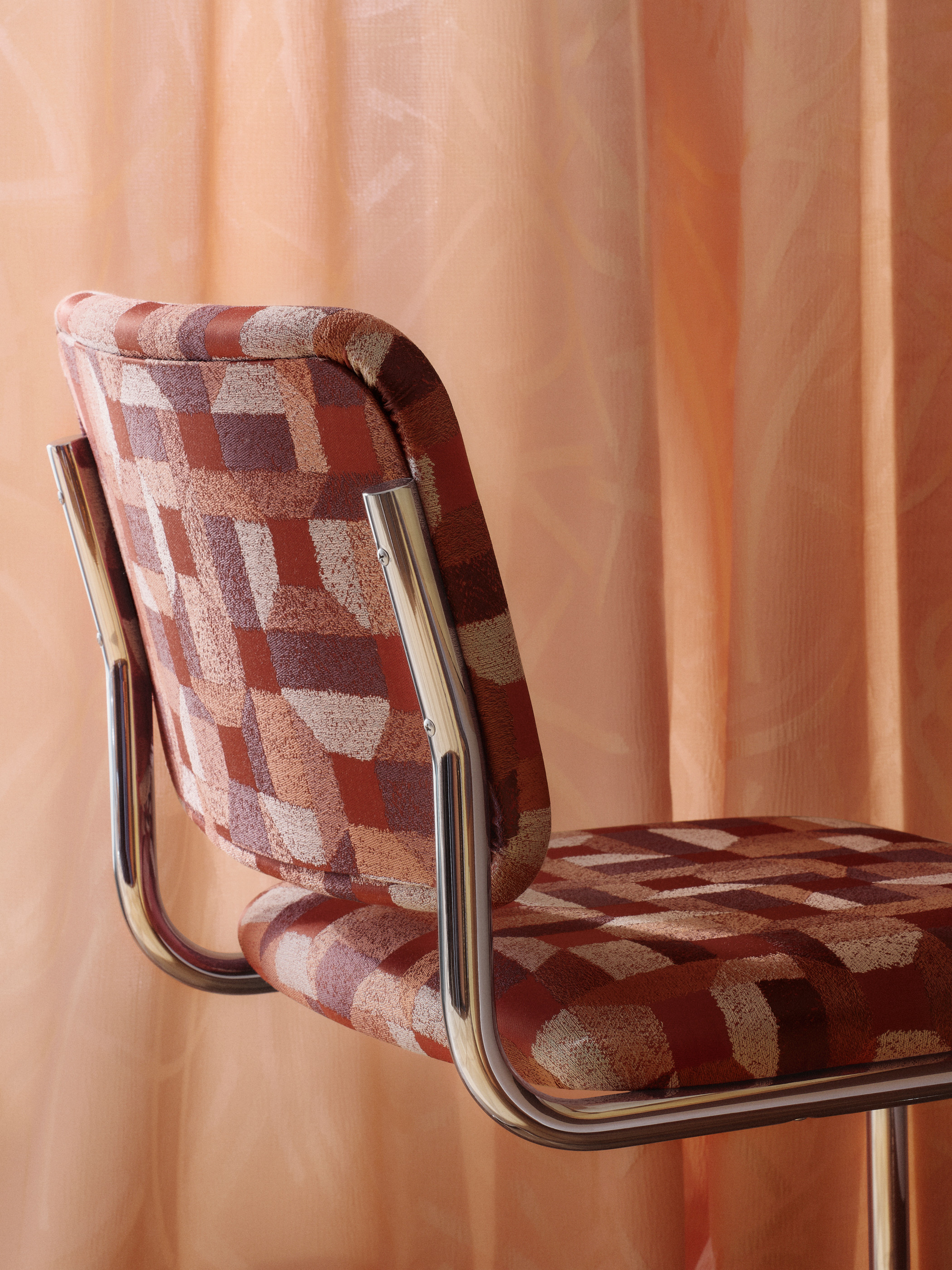 В отличие от предыдущих коллекций Rubelli — Gardens с ее ботаническими мотивами и Teorema, сведенной к строгой геометрии, — LUCE делает следующий шаг. Здесь ткань перестает быть фоном или декоративной поверхностью и становится активным участником архитектурной среды. Она фильтрует свет, направляет его, сжимает или, наоборот, рассеивает, задавая атмосферу интерьера не через орнамент, а через оптическое поведение.