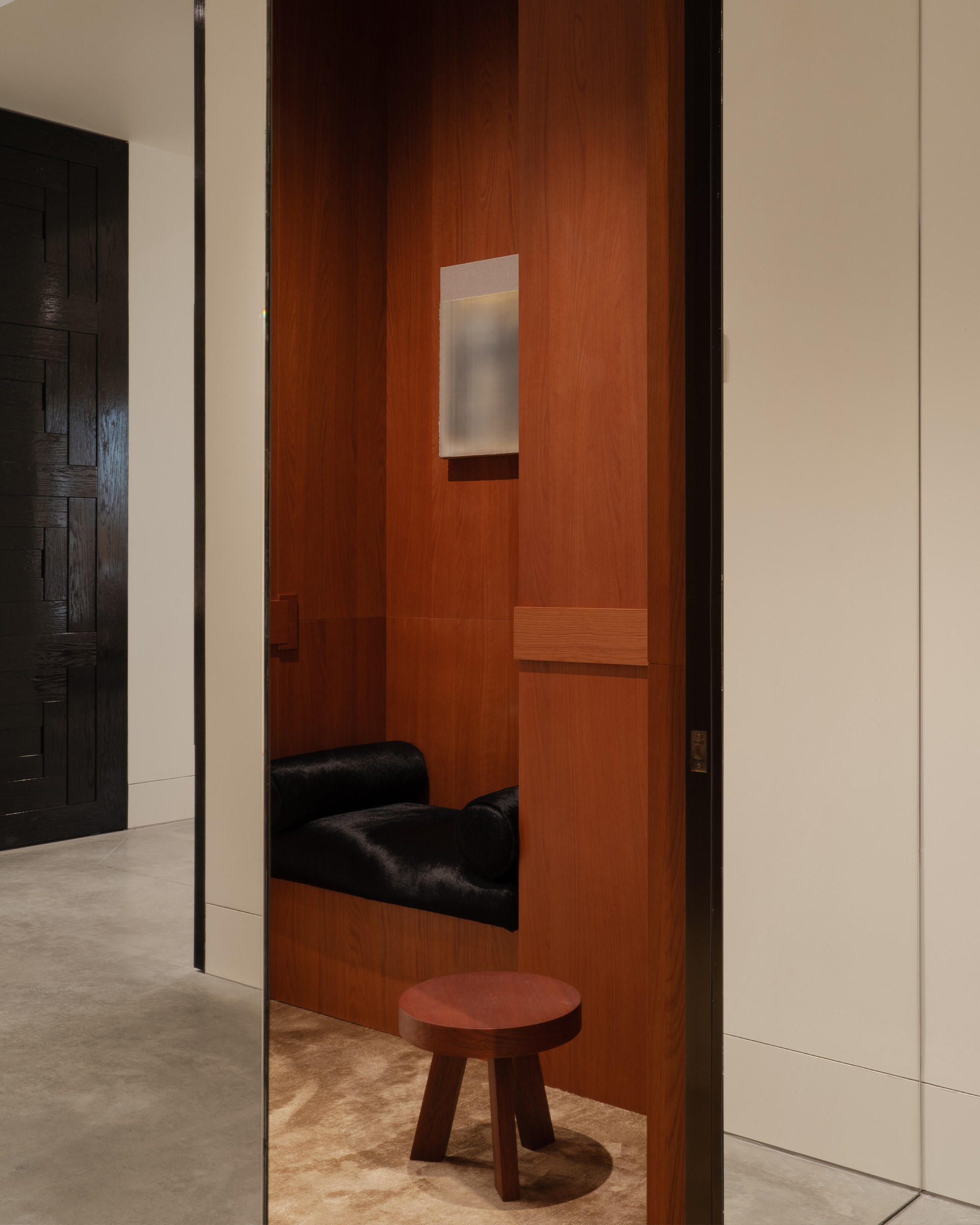 Полина Дицман отмечает, что начало любого интерьера — знакомство с его героями. Именно поэтому архитектор задает множество вопросов клиентам о любимых фильмах, отелях и местах, архитектуре, брендах, которые могут вдохновлять не только своими интерьерными решениями, но и визуальным языком и ощущениями, а также заботой о клиенте. Так, на основе ответов Ирины и Ивана (Ирина Голомаздина и Иван Хохлов — сооснователи и партнеры бренда — прим. Редакции) были составлены ассоциации, на которые опирались архитекторы при проектировании: лаконичность, культура, интернациональность, натуралистичность и природность, вневременность, простор, комфорт, эстетическое удовольствие, романтичность, японская эстетика.