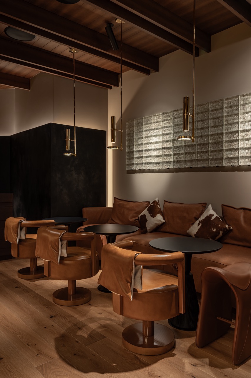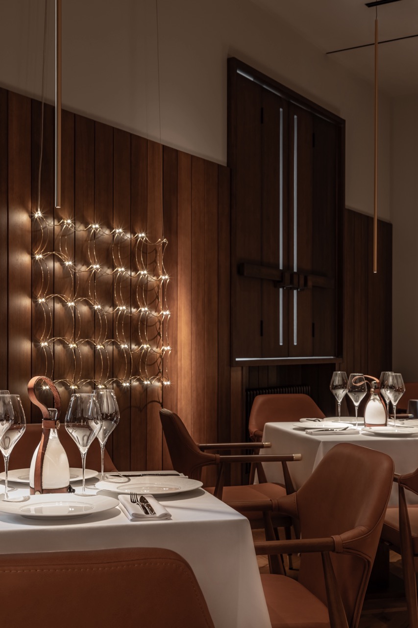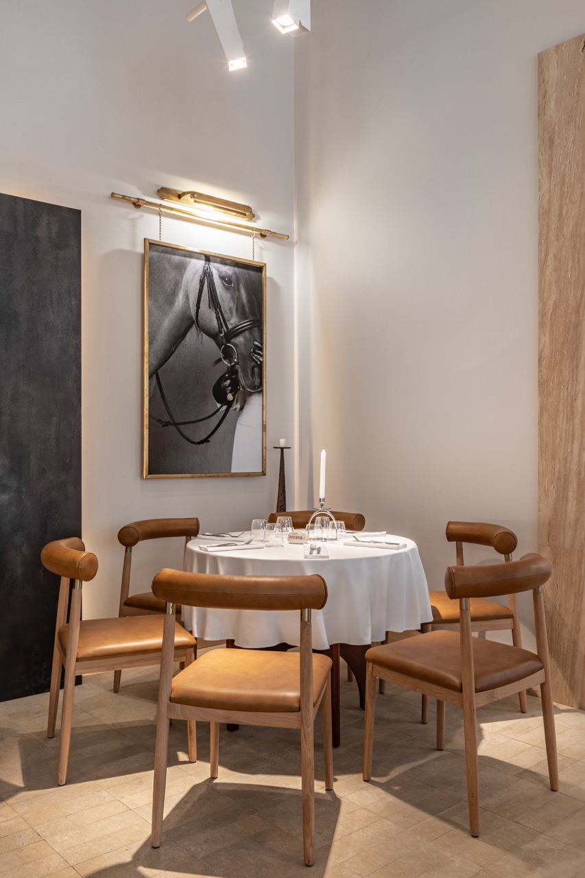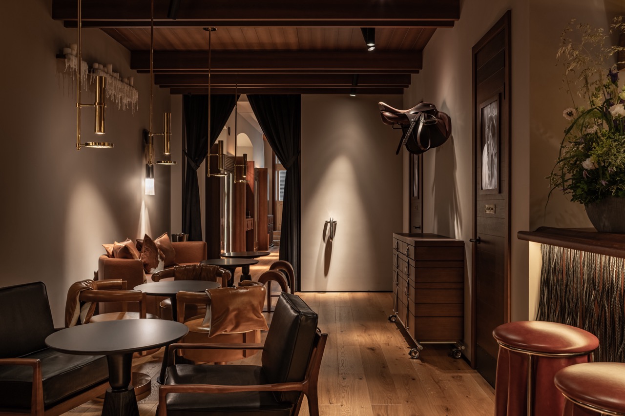 Любовь хозяев ресторана к конному спорту проявлена и в двух других помещениях — баре и зале Fine dining, выдержанных в темных тонах. Для отделки потолка и стен использован шпон экзотического дерева этимое, от природы имеющего темный красно-коричневый оттенок, делающий его похожим на старые доски конюшни. Винные шкафы, станции официантов, ставни, светильники, выполненные по чертежам дизайнеров, оформляют интерьер. Сделан акцент на детали: высокие табуреты в виде седла, мягких креслах и диванах, отделанных седельной кожей, седло для конкура, свисающее с потолка. Атмосферу винтажной конюшни также подчеркивают лошадиные подковы, как известно, приносящие удачу.