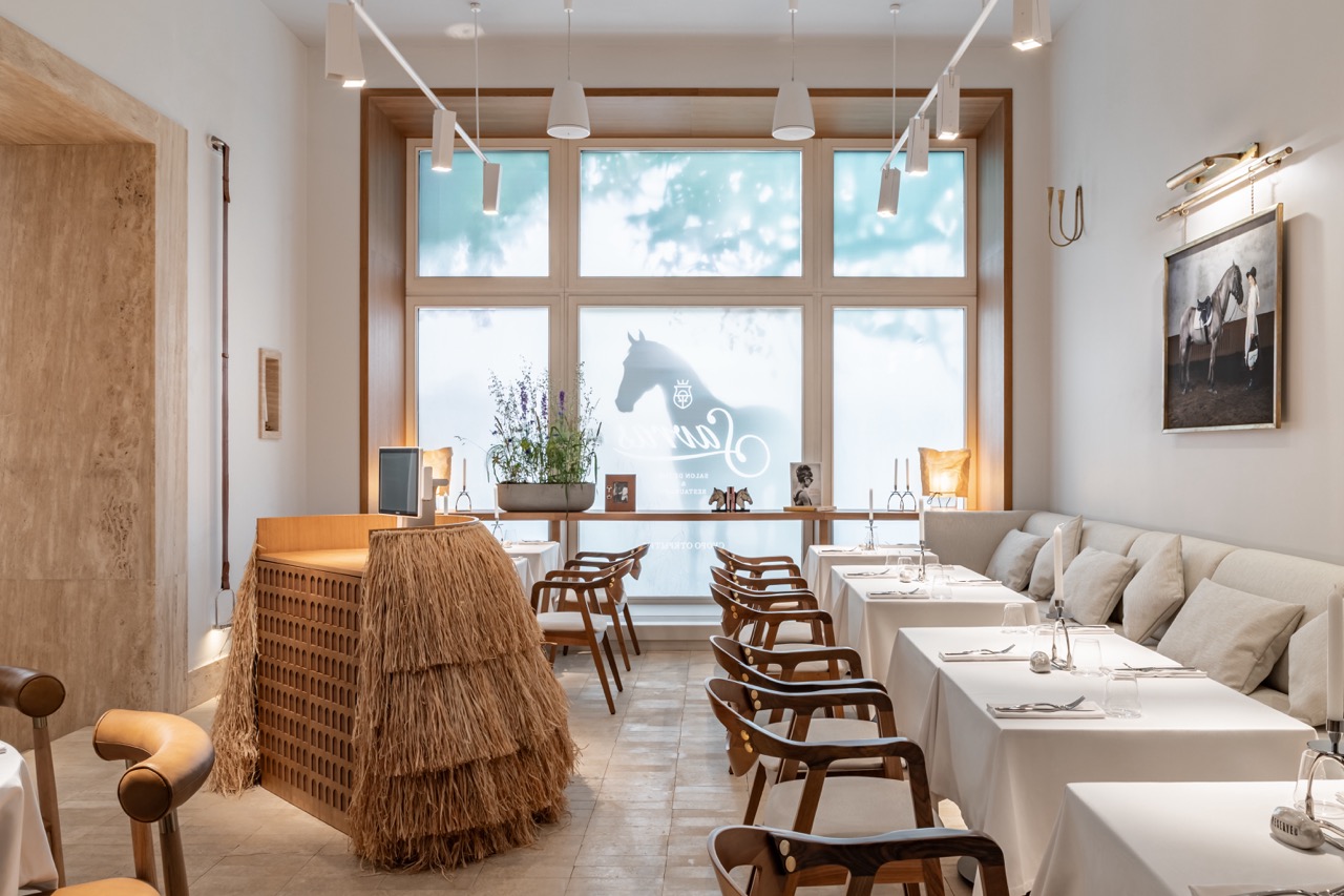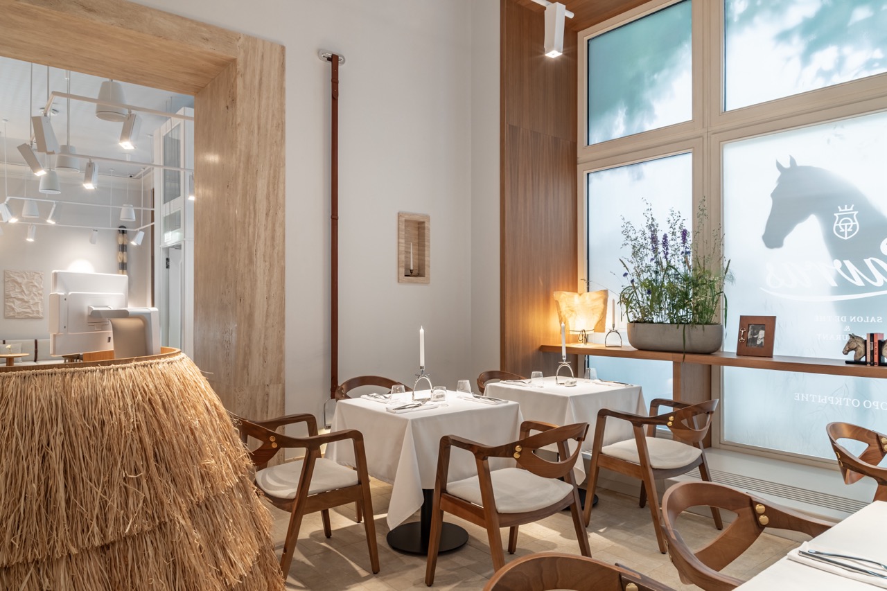 «Египетский дом» на Большой Дмитровке – новое место для гурманов. Легкий интерьер, перекликающийся с архитектурой здания, подчеркивает атмосферу французской кондитерской и одновременно наполнен деталями, отсылающими к атмосфере подмосковных усадеб и конюшен, что не случайно. Дизайн создавался по заказу владельцев, любителей конного спорта Анны и Кирилла Егоровых и ресторатора Карины Григорян.