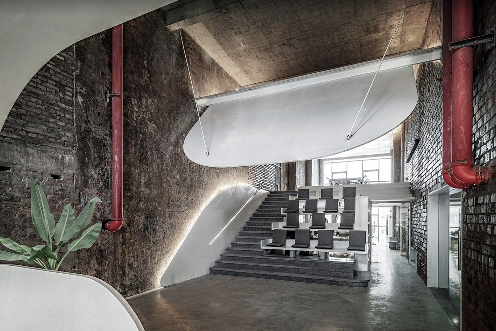 Моделируя проект в деталях, мы показываем заказчикам и клиентам его долгосрочное будущее. Девелоперам, арендаторам, покупателям недвижимости стоит остерегаться чрезмерно ярких гиперболизированных концепций, презентаций и обещаний, не подкрепленных аналитикой того, как это будет существовать в реальности. Сегодня существует проблема визуального маркетинга интерьерных проектов, которая связана с высоким уровнем конкуренции на рынке, визуальной пресыщенностью и мощным развитием цифровых инструментов создания рекламы. Зрительные обобщения, эффектные, но мало реалистичные ракурсы или конструктивные упрощения могут отлично продать проект. Но затем возникает закономерный вопрос: «Этот левитирующий светящийся куб в офисе со слайда возможен в реальной жизни? Если да, то как его устанавливать, во сколько обойдется его эксплуатация и не упадет ли он сотруднику на голову?». Конечно, есть примеры, когда вычурный и сложный дизайн — фундамент концепции. Но таких проектов оказывается не так много. В качестве примера — офисный редевелопмент типографии в китайском городе Чунцин с контрастной концепцией, где сложные и броские структурные элементы невообразимо вписываются в старый конструктив.