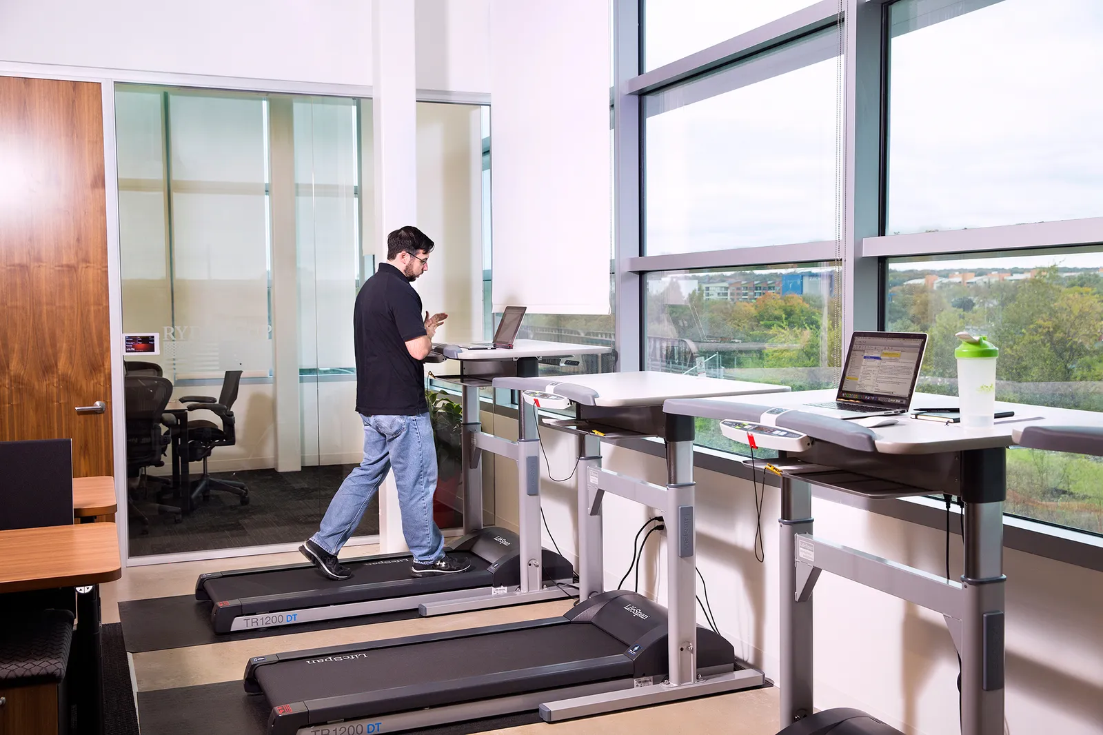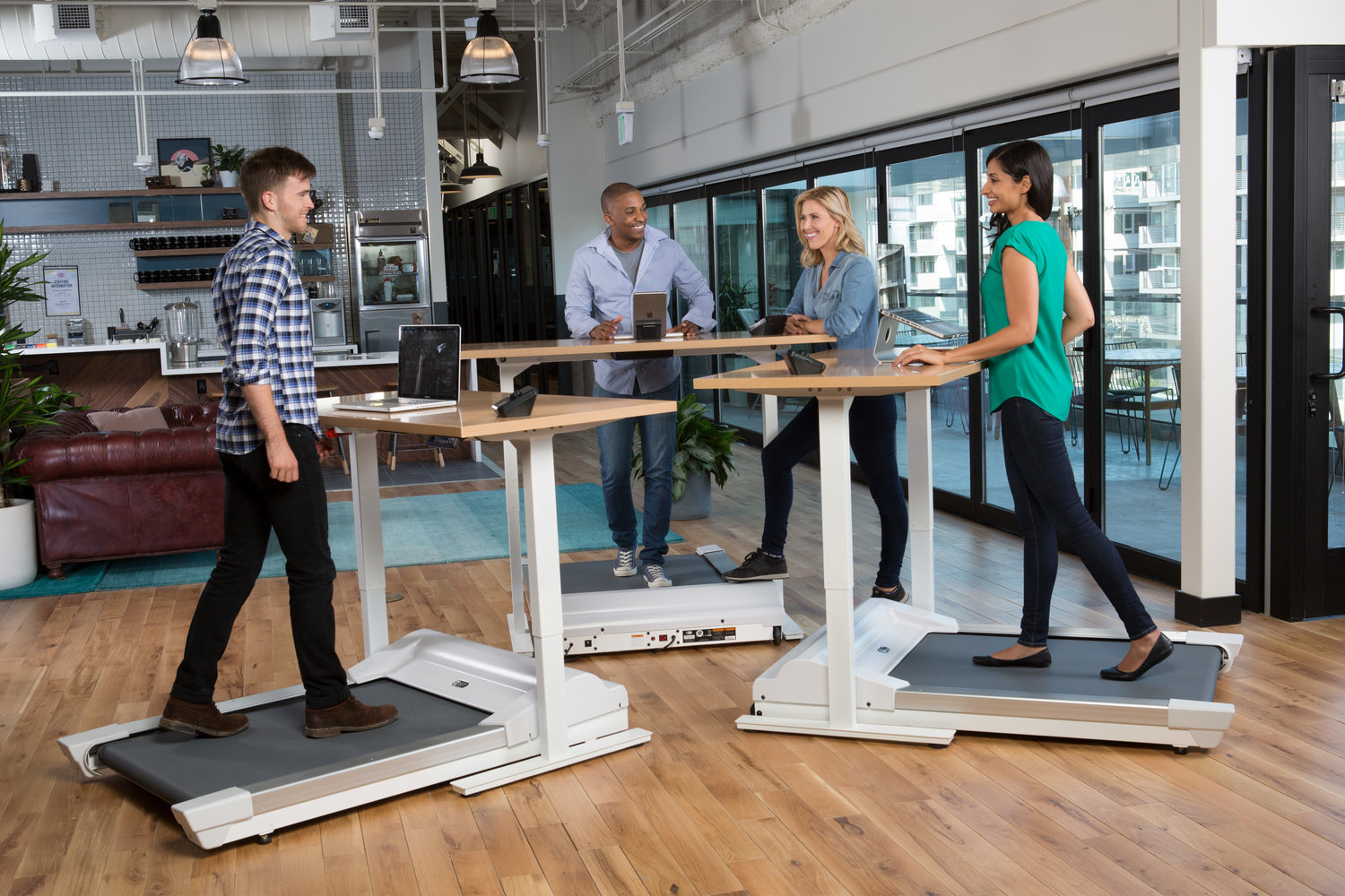 Другой тренд связан с модой на здоровый образ жизни. Маркетологи решили, что все любят бегать по утрам — и теперь делать это можно и в офисе. В Англии и США в 2010-е годы случился всплеск проектов со встроенными беговыми дорожками рядом со столами. Но вместо ясной головы и бодрости у сотрудников развились усталость и дискомфорт. Разумной и простой альтернативой стало изменение схем навигации, рабочих графиков и перерывов, вынос рекреационных точек на внешнюю территорию бизнес-центра. Так, здоровый образ жизни стал почти рабочим распорядком. Например, такое решение хорошо иллюстрирует деловой квартал AT&T Discovery District в Далласе от бюро Gensler.