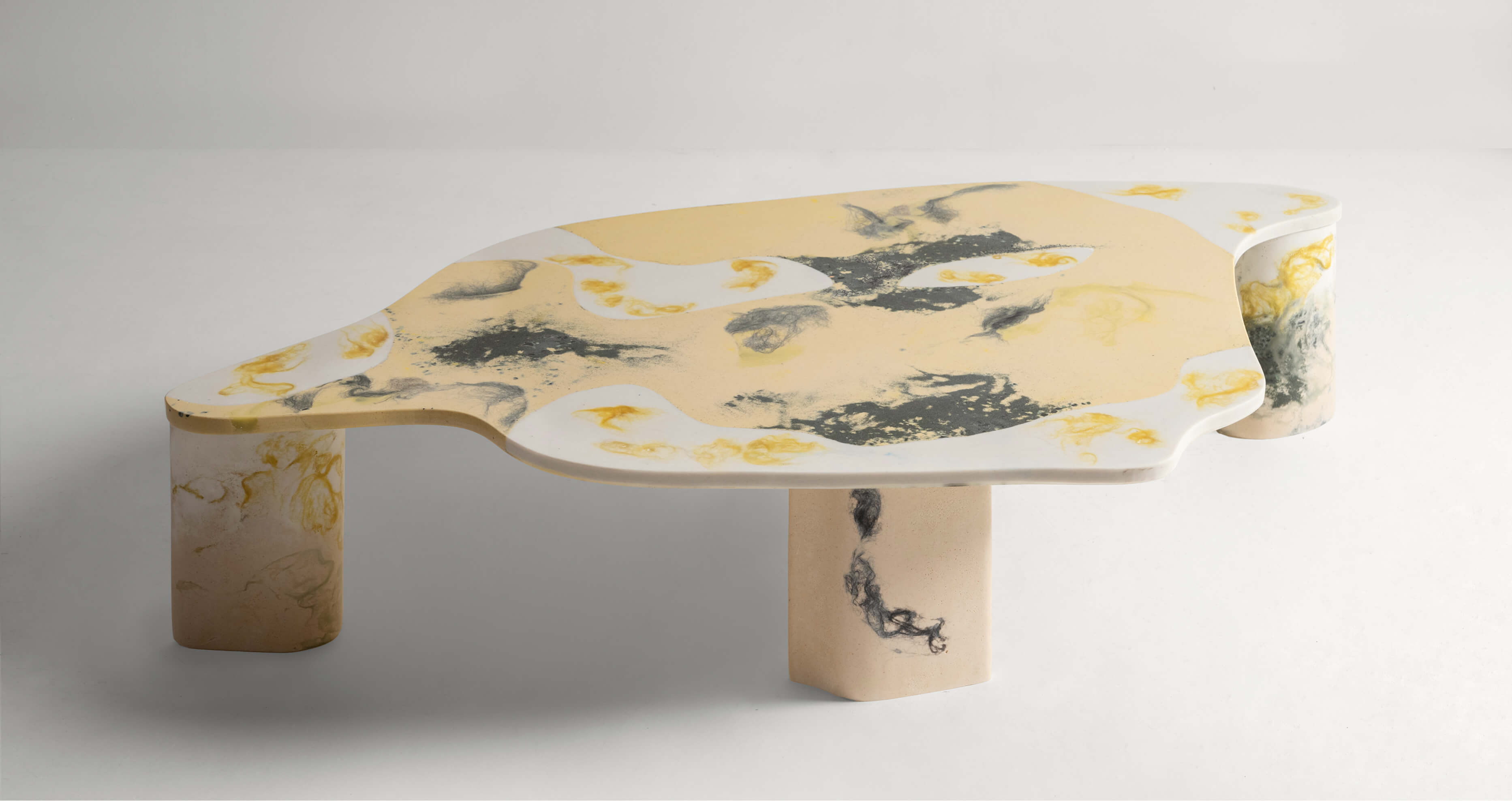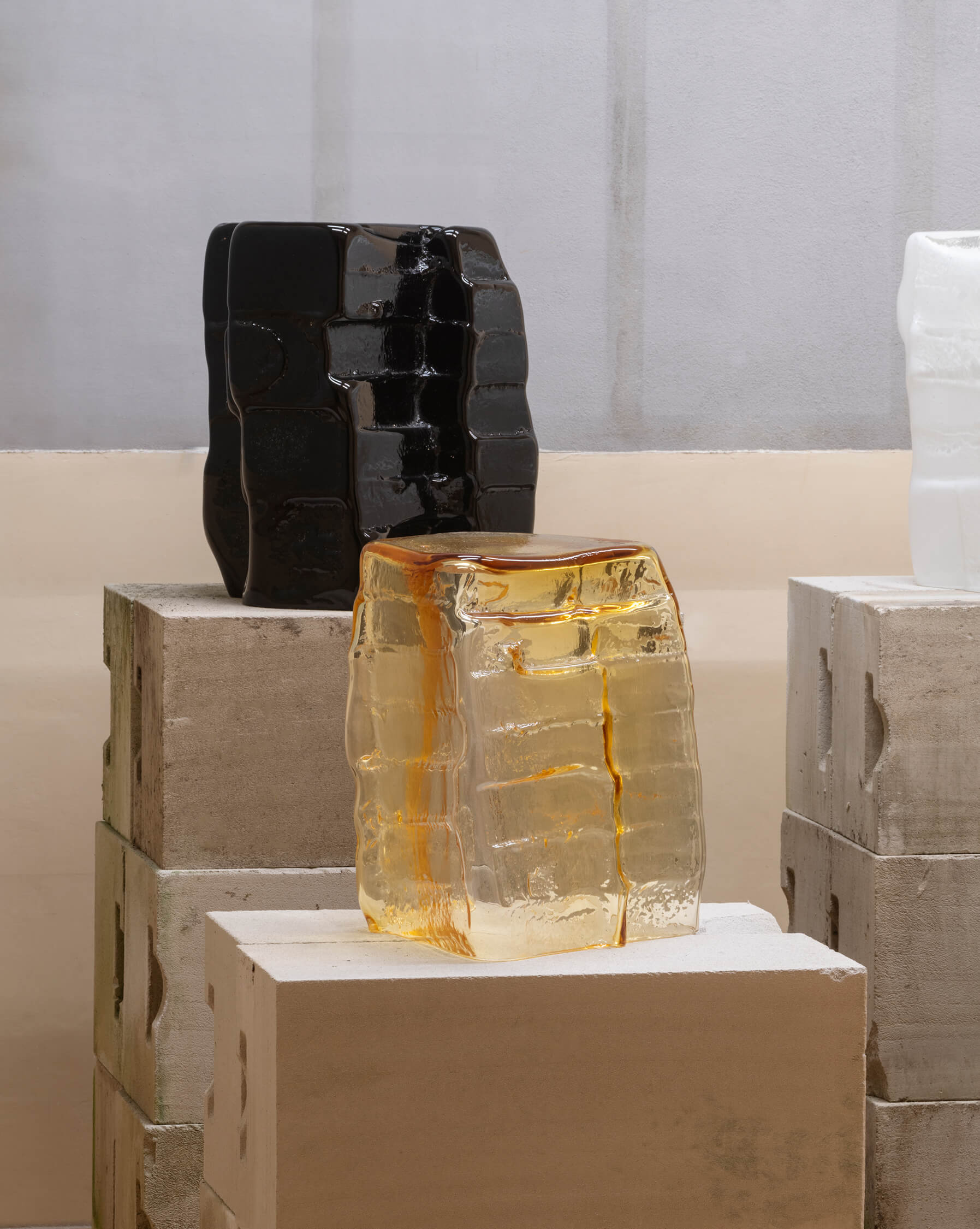 Важную часть экспозиции составляют проекты, рожденные в рамках резиденций. Так, Дуччо Мария Гамби работал в Bianco Cave в Саленто, исследуя локальный камень и его потенциал в современном дизайне. Tipstudio в коллаборации Анной Лучией Риццелло создали ковер, а также зеркало из серии Loto, выполненное с использованием местной земли, — пример того, как коллективное творчество рождает новые формы.