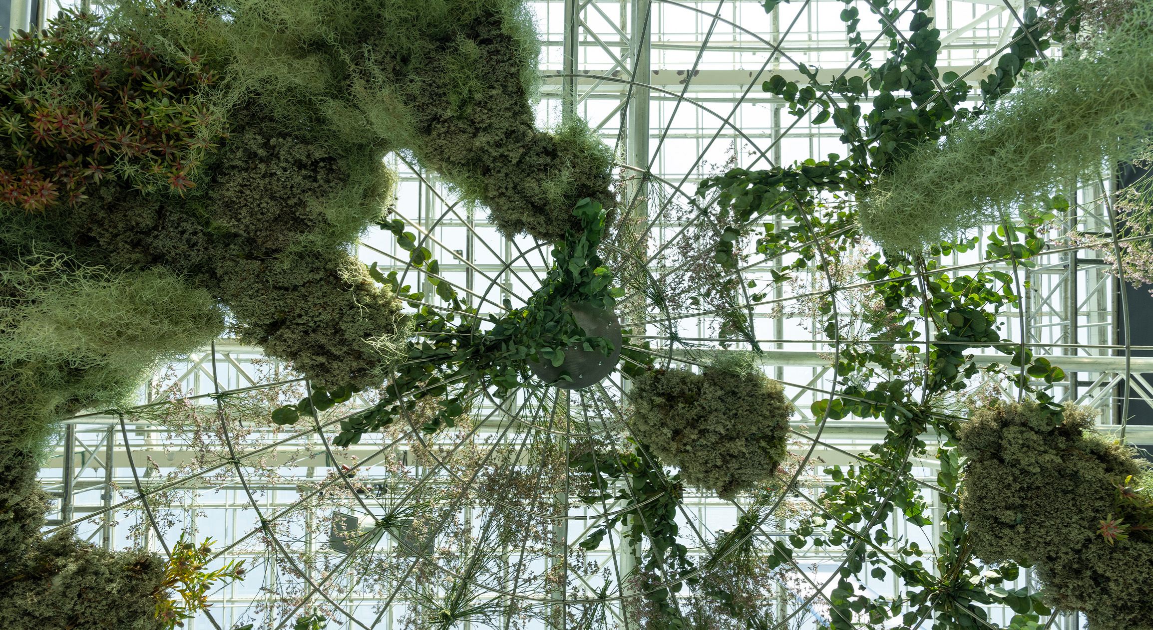 Парящий зеленый купол, первая часть проекта, — образ культурного ландшафта, в котором определяющую роль играет рука и мысль человека. Проницаемую форму купола из стального каркаса обволакивает флористическая композиция с растениями, обладающими уникальными характеристиками: одна половина устойчива к сильной засухе, другая — способна самовоспламеняться.