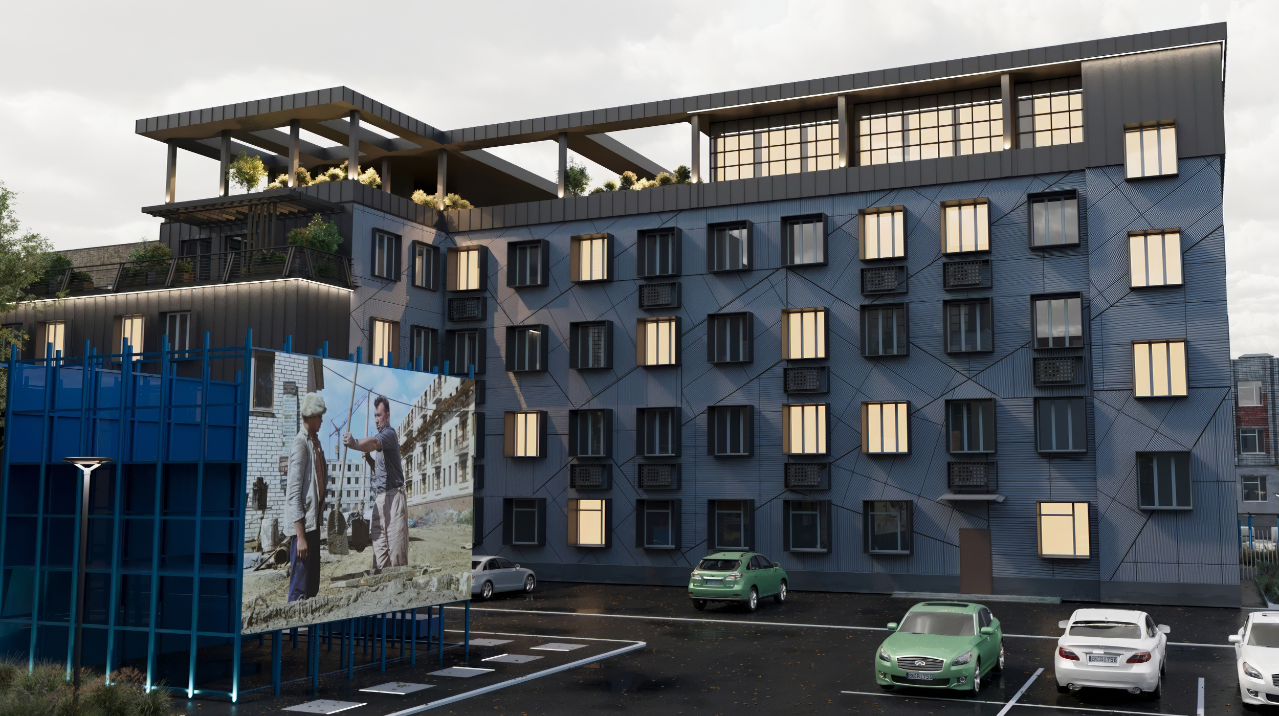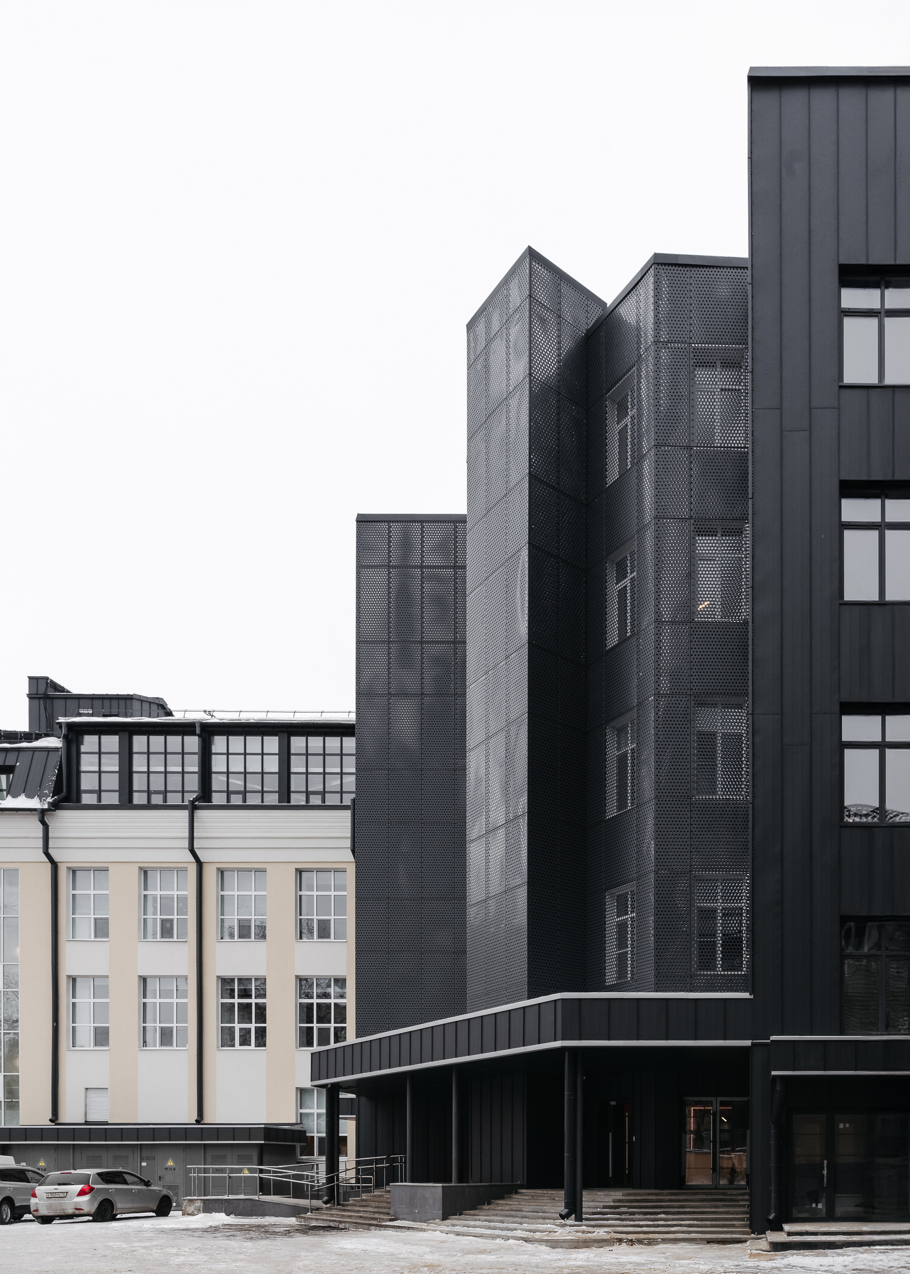 Реконструкция главного корпуса стала отправной точкой для разработки всего квартала. После главного здания архитекторы приступили к обновлению корпуса Б, а также занялись проектом газовой котельни, обеспечивающей автономное отопление комплекса. Особое внимание команда бюро уделила креативному оформления 26-метровых труб котельной: с помощью вечерней подсветки они превращаются в яркий арт-объект. Кроме того, заказчик благоустроит территорию между офисным зданием и жилым домом, превратив её в сквер, который дополнит общую концепцию благоустройства и станет подарком для города.